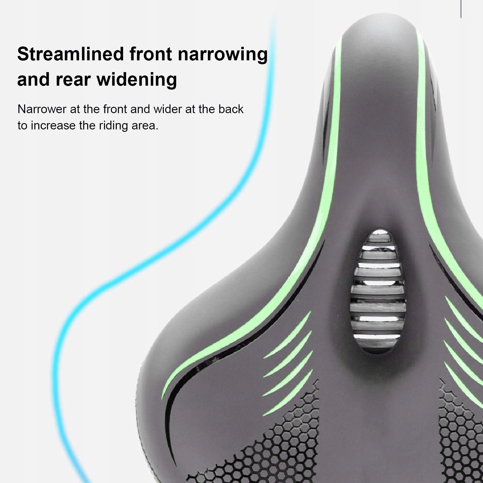 2. Повітропроникна піна з ефектом пам’яті: сідло має порожнисту, дихаючу піну з пам’яттю високої щільності, яка забезпечує подвійну м’якість, повільний відскок і максимальний комфорт для приємної їзди.