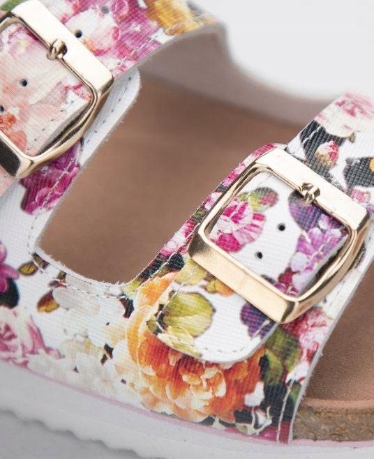 Світло -елегантні жіночі пробки з пробки з підвищеною підошвою в п'яті. закріплені двома срібними пряжками шкіри верхній з прекрасним квітковим малюнком забезпечують не лише комфорт під час роботи, але й виглядає дуже приємно. Крім того, верхня частина покрита ПУ, а зручність пробної підошви збільшує використання eva та профільованої, м'якої вставки . Глибокий малюнок на підошві забезпечує стабільність навіть на слизьких поверхнях.