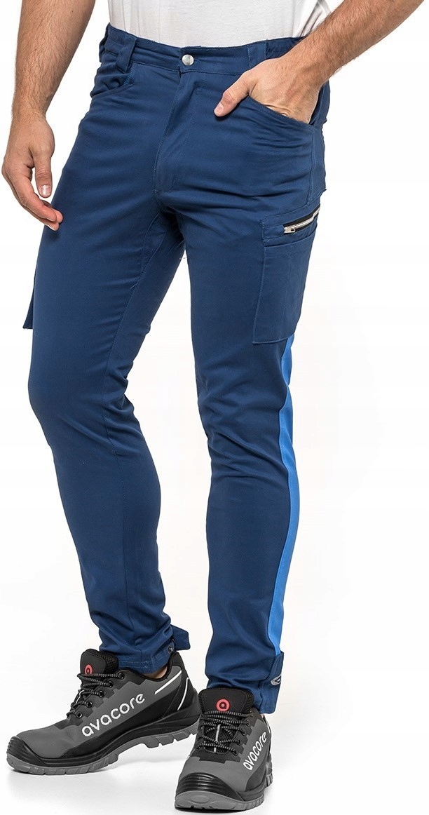 Інноваційні робочі штани з тонким вирізом, виготовленим з розтягування, повітряної та динамічної тканини внаслідок поєднання високого бавовни та еластану. Сильний, приємний на дотик із вагою 260-275 г/м2. Вони гарантують відмінний комфорт і свободу руху навіть у спекотні літні дні. Можливість відрегулювати ширину ноги ноги завдяки використанню клаптя, кріпленого натисканням. Надзвичайно довговічна завдяки подвійному зшиванню, було зроблено м'яке косове переплетення.