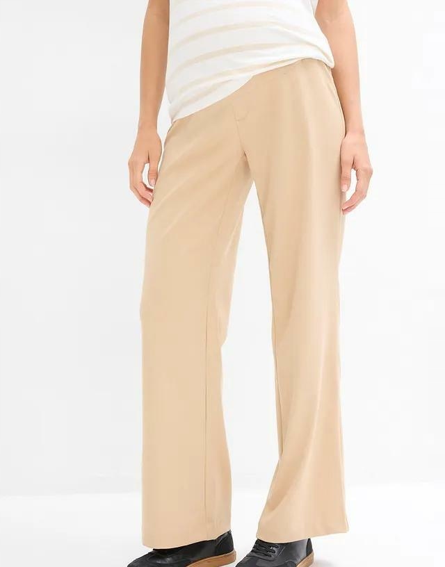Ці бежеві штани для вагітних від Bonprix — це ідеальне поєднання комфорту та стилю, яке зробить кожен день вашої вагітності легким і невимушеним. Вони створені для жінок, які цінують невимушений образ і водночас потребують додаткового комфорту. Виготовлені з м’якої гнучкої тканини, вони адаптуються до вашої фігури, що змінюється, забезпечуючи свободу рухів і відсутність тиску. Додаткова еластичність на талії і розтягуються шви роблять штани ідеально прилягаючими до тіла, не перешкоджаючи природному розтягуванню живота. Бежевий колір нейтральний і легко поєднується з різноманітним гардеробом, а 46 розмір гарантує ідеальну посадку жінкам середнього зросту. Bonprix приділяє увагу деталям - м'який крій швів, відсутність швів на рукавах і зручний пояс із задньою кишенею, які забезпечують додатковий комфорт. Ці штани – ідеальний вибір для кожної майбутньої мами, яка хоче виглядати модно та почуватися комфортно в будь-якій ситуації.