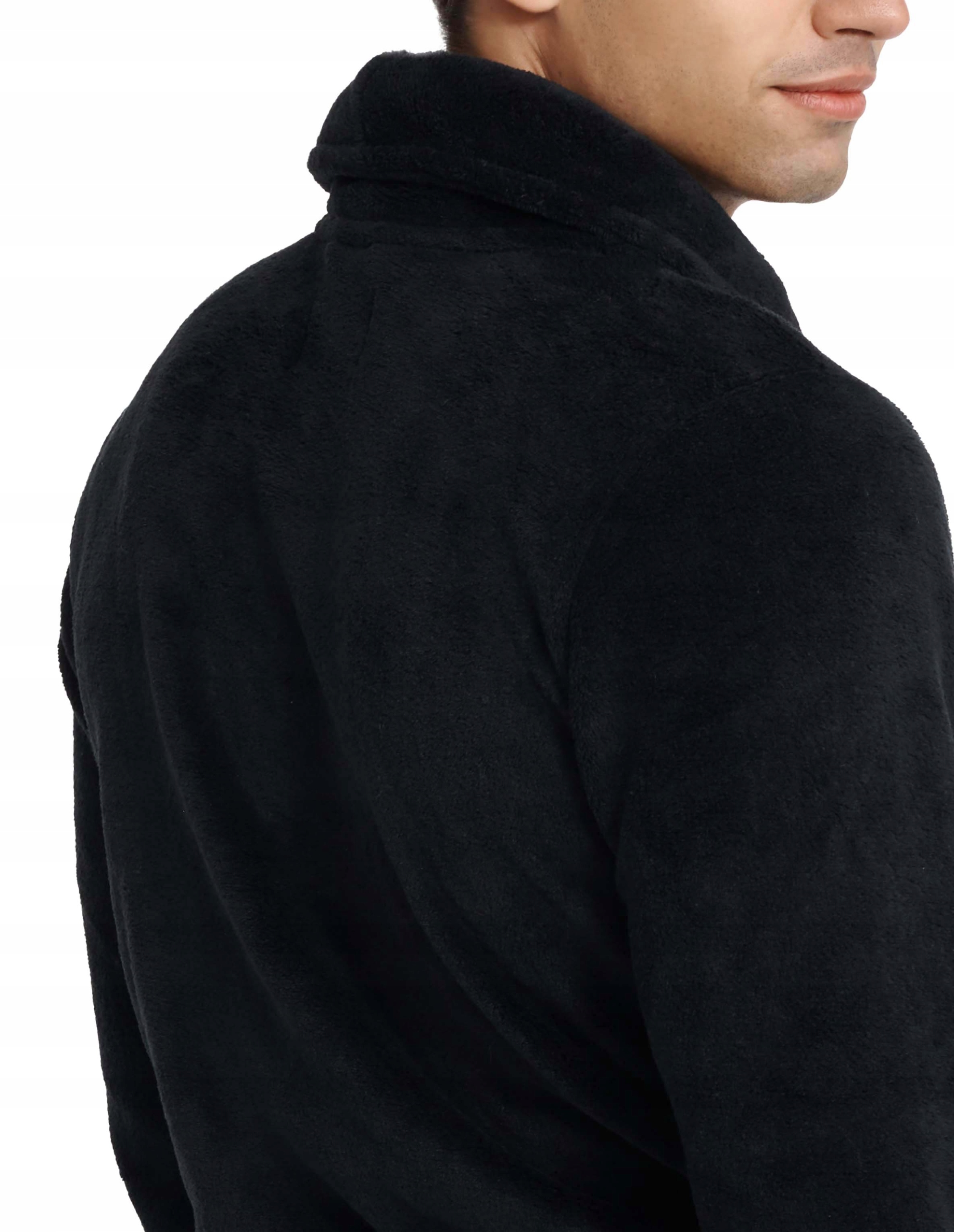 Елегантний чоловічий халат привертає увагу своїм приглушеним чорним колір і приємний на дотик, фактура плюшу.