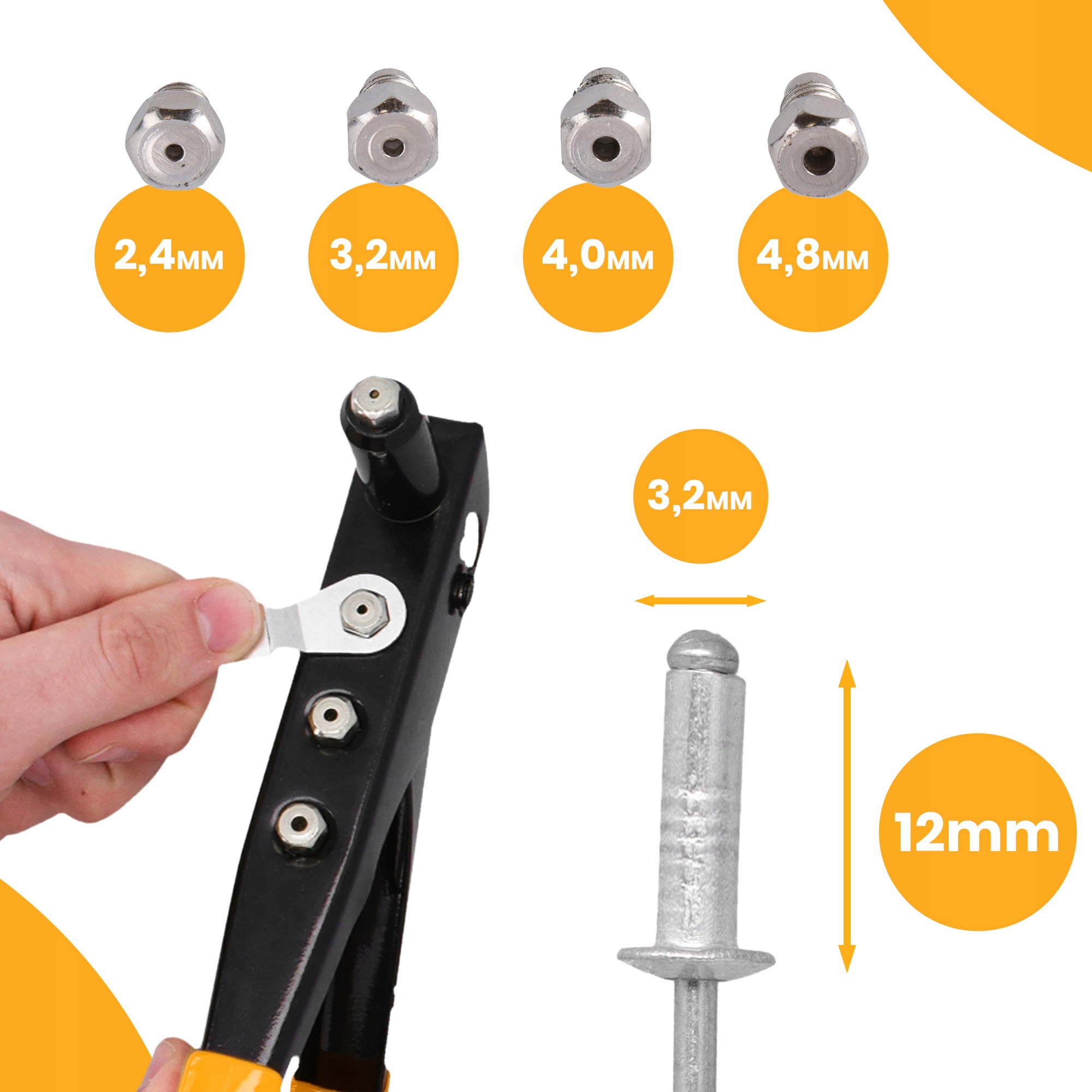 1x Ручний стандарт Rivetownica з 4 порадами (2,4 мм - 4,8 мм)