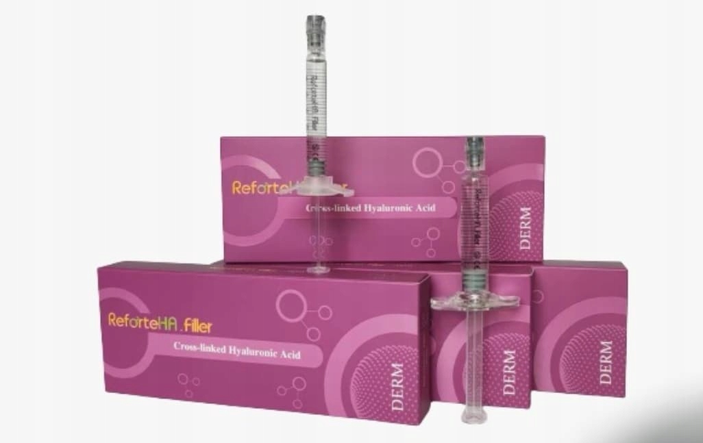 REFORTE DERM препарат на основі зшитої гіалуронової кислоти нетваринного походження та антиоксидантів (манітол, сорбіт). Рекомендується для заповнення середніх і глибоких зморшок шляхом ін'єкцій в середній або глибокий шар дерми. Без грудочок, найчистіша гіалуронова кислота DERM