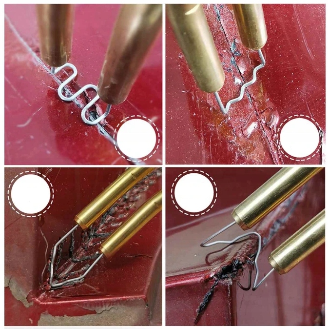 ⭐️Скоба у формі великої хвилі (RS28) корисна для ремонту великих і більш складні тріщини. Щоб оптимально з’єднати тріщину, вставте скобу перпендикулярно або паралельно її лінії, притискаючи обидві сторони тріщини.
