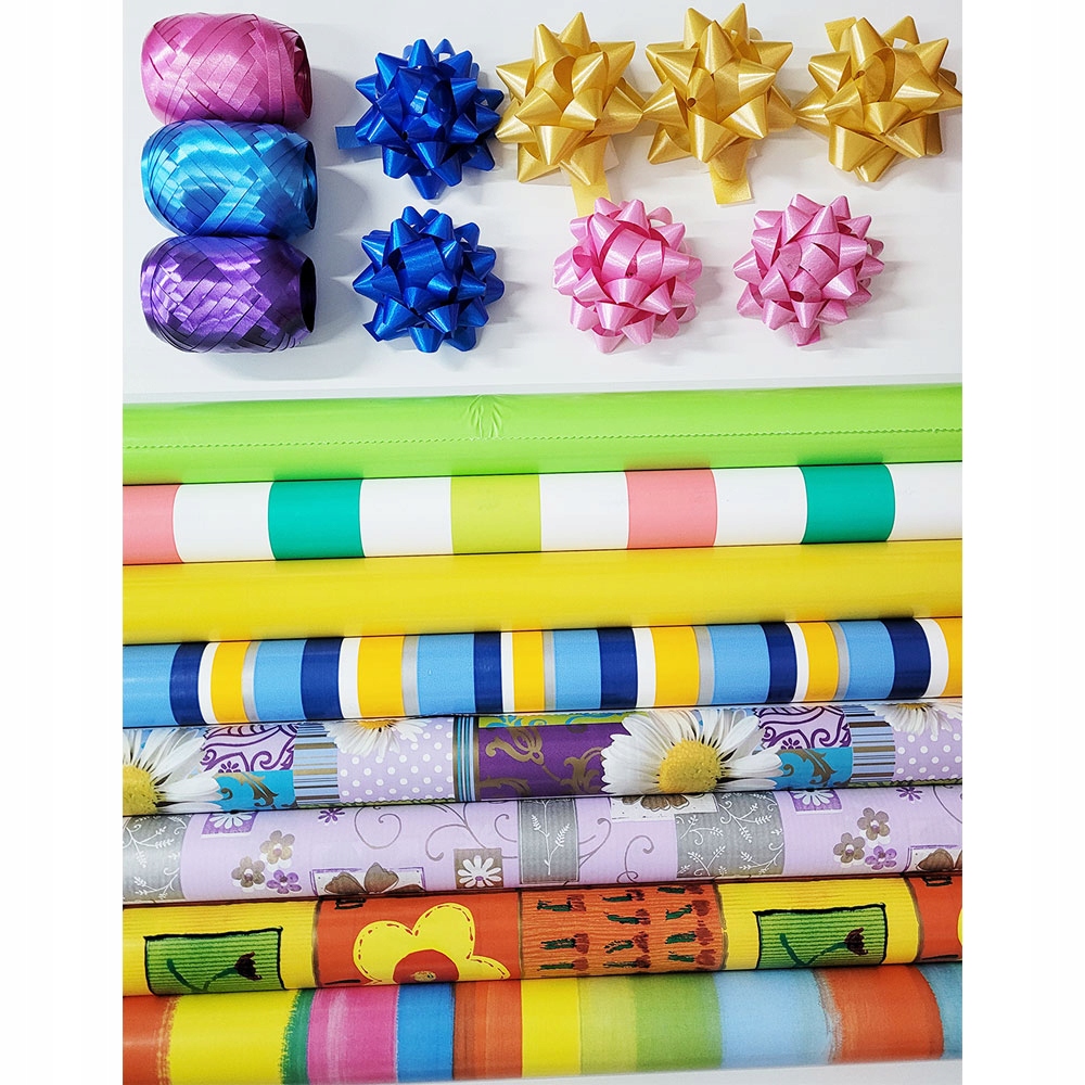 8 рулонів пакувального паперу 2 м завдовжки та 57 см завширшки 7 розеток 3 стрічки