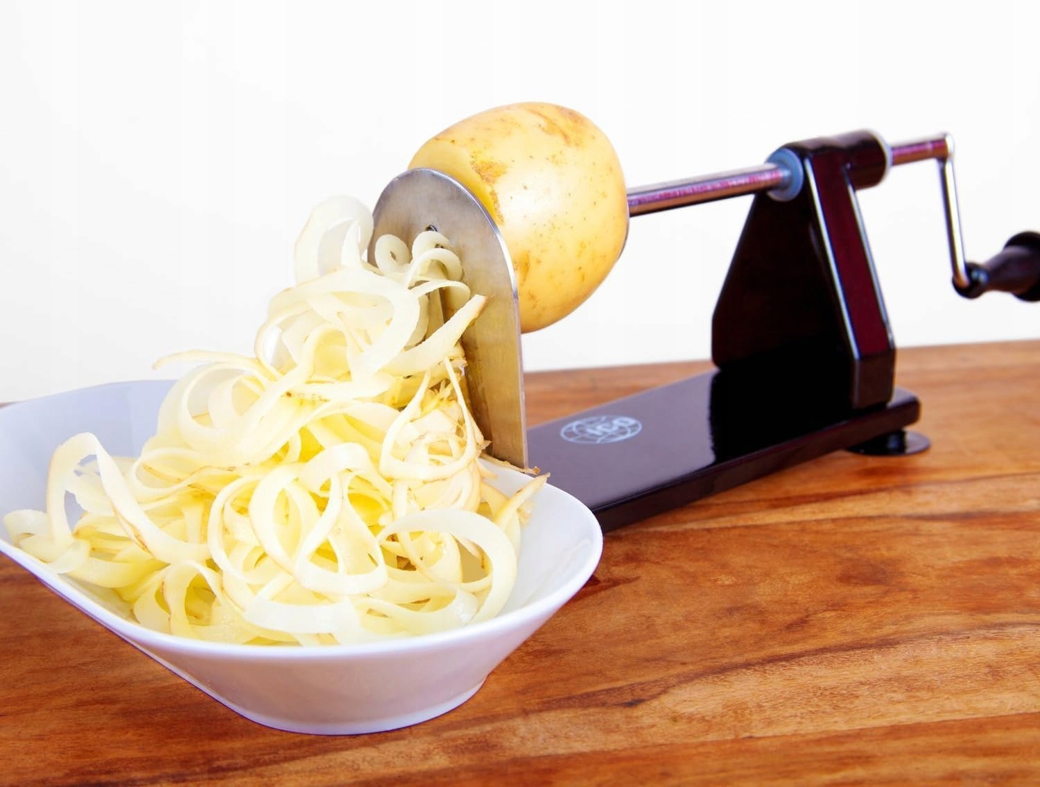 - компактний і простий у використанні: спіралізатор завдовжки 25 см і висотою 12 см і важить лише 0,8 кг. Просто виберіть потрібне лезо (3 мм, 4 мм або 8 мм) і легко кріплення та блокування, прикріпіть потрібний овоч на ручку, скрутіть ручку і щоразу отримуйте красиві спіралі. Усі частини можна промивати в посудомийній машині, що забезпечує швидке та легке очищення.