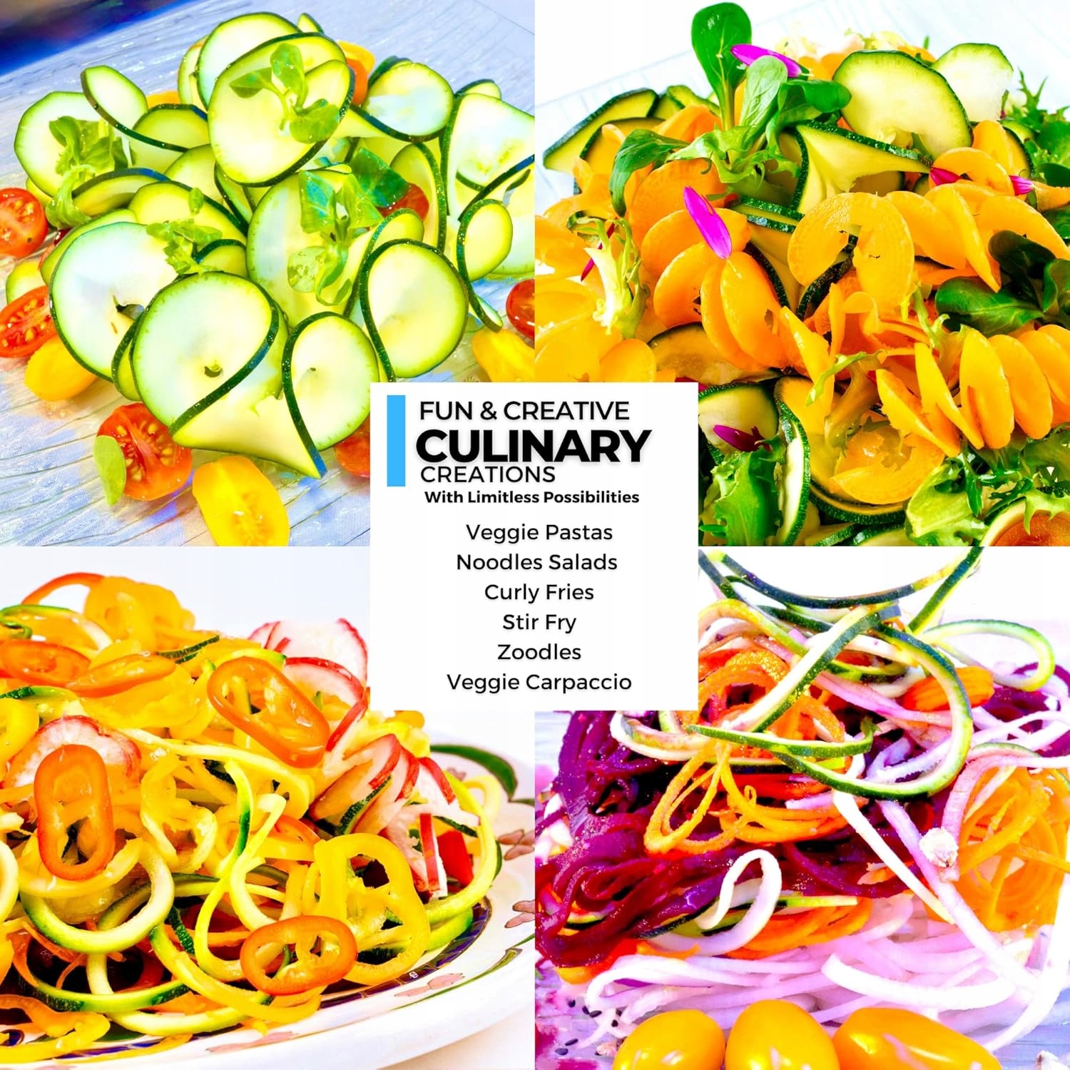 - Здорові та смішні: Будьте креативні та їжте здорові, маючи нескінченні можливості. Цей харчовий спіралізатор - ідеальний інструмент. Створіть овочеві та фруктові спіралі, макарони з кабачків, домашні фрі, салати, салати, смажені страви на сковороді та багато іншого. Зробіть здорове харчування, щоб стати задоволенням, обертаючи моркву, кабачки, гарбуз, огірки, буряк, яблука та багато інших продуктів у макарони, спіралі та стрічки.