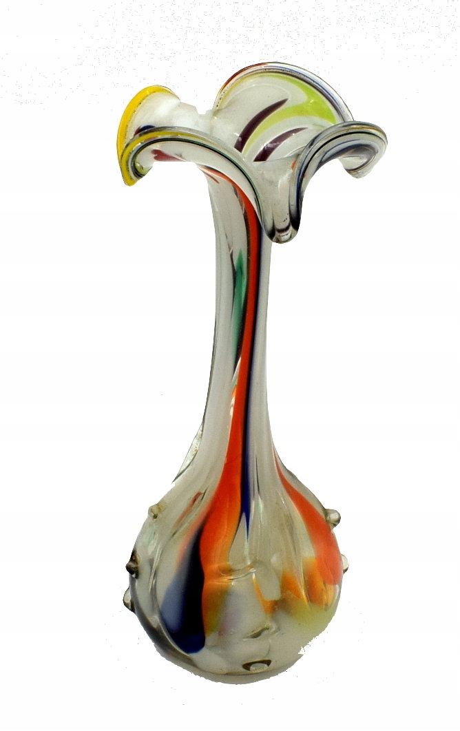 ZĄBKOWICE - КРАСИВА МАСИВНА ВАЗА - кольорове скло - рване - 24 см.