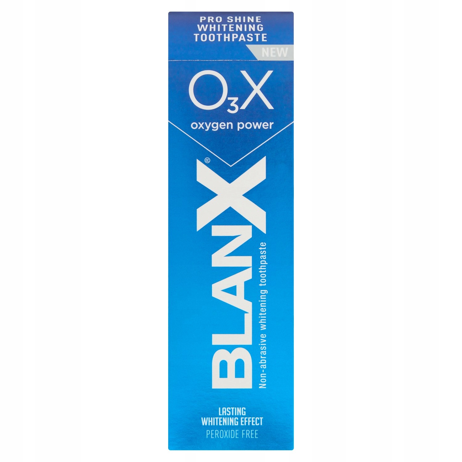 Ця ексклюзивна формула BlanX поєднує силу кисню, перліту та арктичного лишайника, щоб забезпечити чудову відбілюючу дію. Зубна паста O3X допомагає активно видаляти плями та м’яко робить ваші зуби сяючими та надзвичайно яскравими. Неабразивний кремнезем і натуральний арктичний лишайник завершують формулу продукту для боротьби з зубним нальотом і очищення зубів, не пошкоджуючи емаль. O3X Вивільняє силу кисню та допомагає видалити плями для кращого результату відбілювання 100% натуральний перліт Ніжний поліруючий засіб, який використовують професіонали PVP Створює захисне покриття на зубах і діє на плями 100% натуральний арктичний лишайник Допомагає боротися з зубним каменем і природним чином відбілює зуби Не- абразивний кремнезем Очищає зуби, не пошкоджуючи емаль