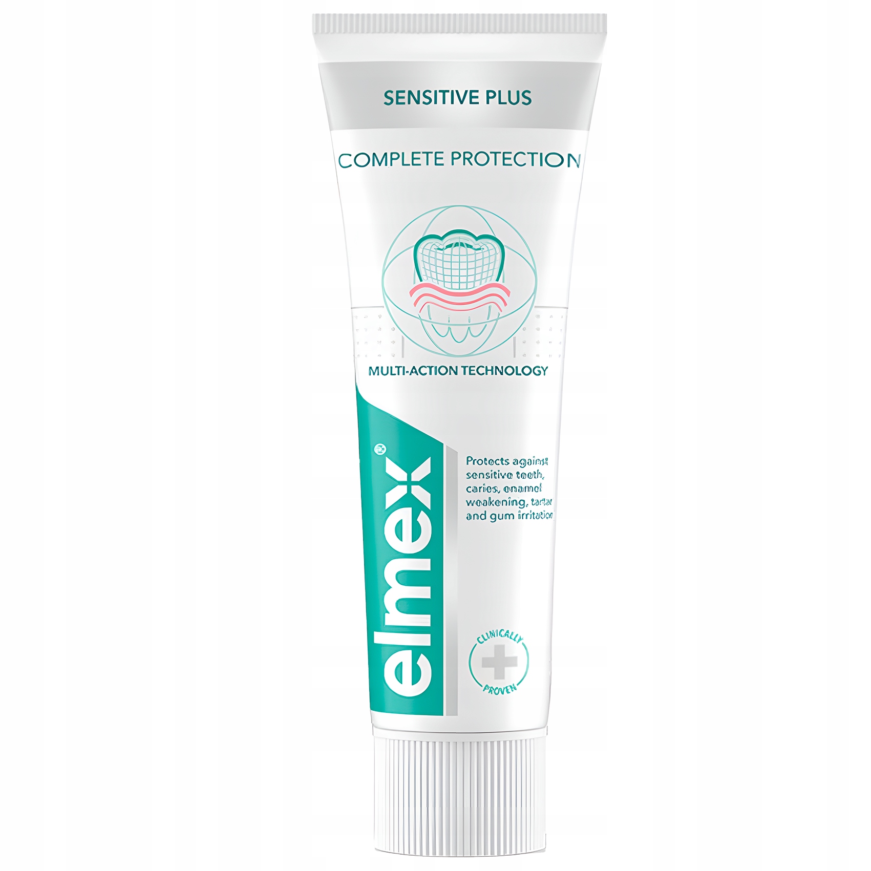 зубна паста.elmex, чутливий плюс повний захист - це спеціалізована зубна паста, призначена для людей з чутливими зубами та ослабленою емалі.