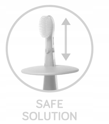 Делікатна силіконова зубна щітка з упором, який запобігає її надто глибокому вставлянню в рот. Призначений для щоденної гігієни порожнини рота. Завдяки веселому дизайну чистити зуби стане весело. Ідеально підходить для того, щоб навчитися самостійно чистити зуби.