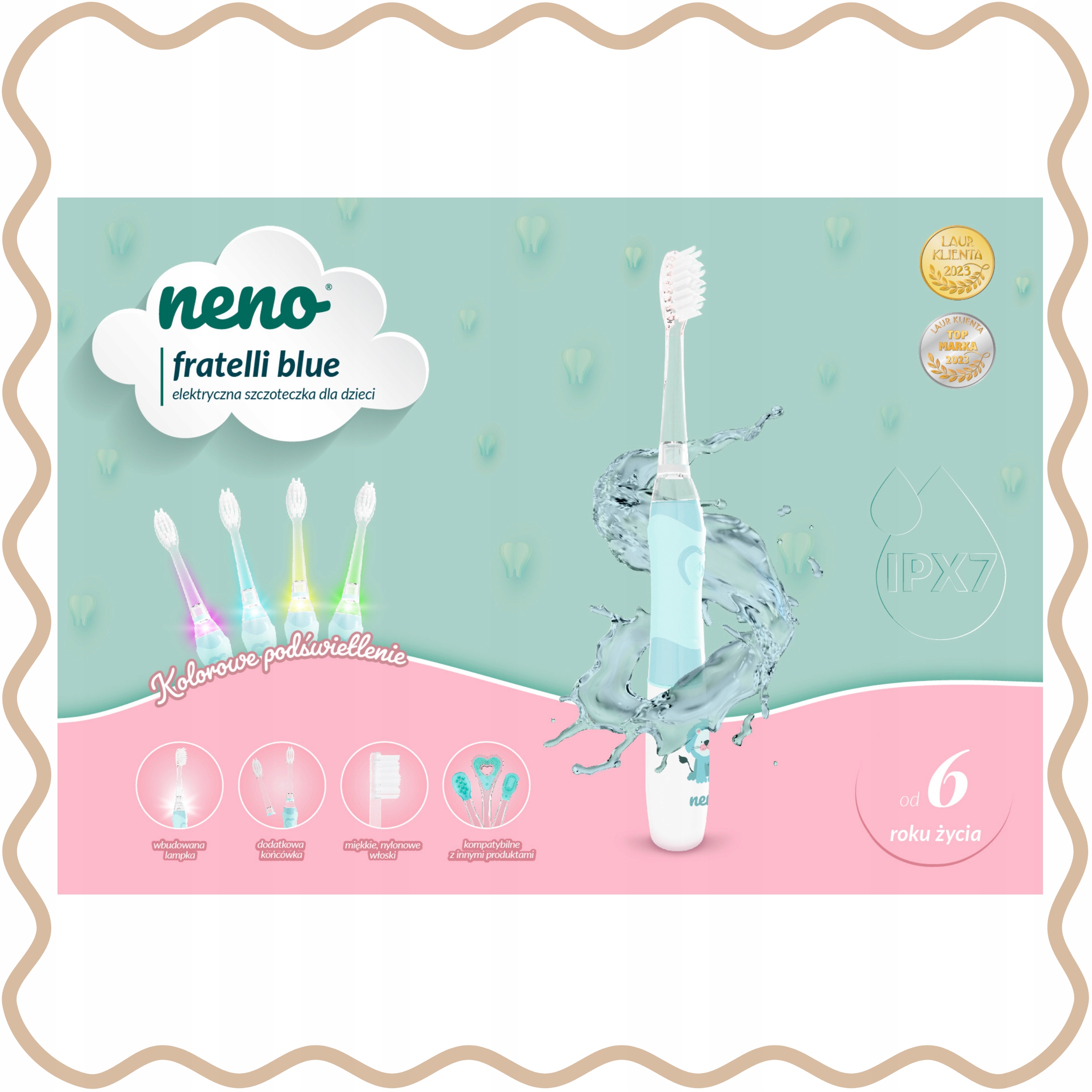 Neno Fratelli – електрична зубна щітка для дітей від 6 років. Має чудові параметри (24 000 коливань за хвилину) і нейлонову щетину, завдяки чому забезпечує ретельне і дбайливе очищення зубів.
