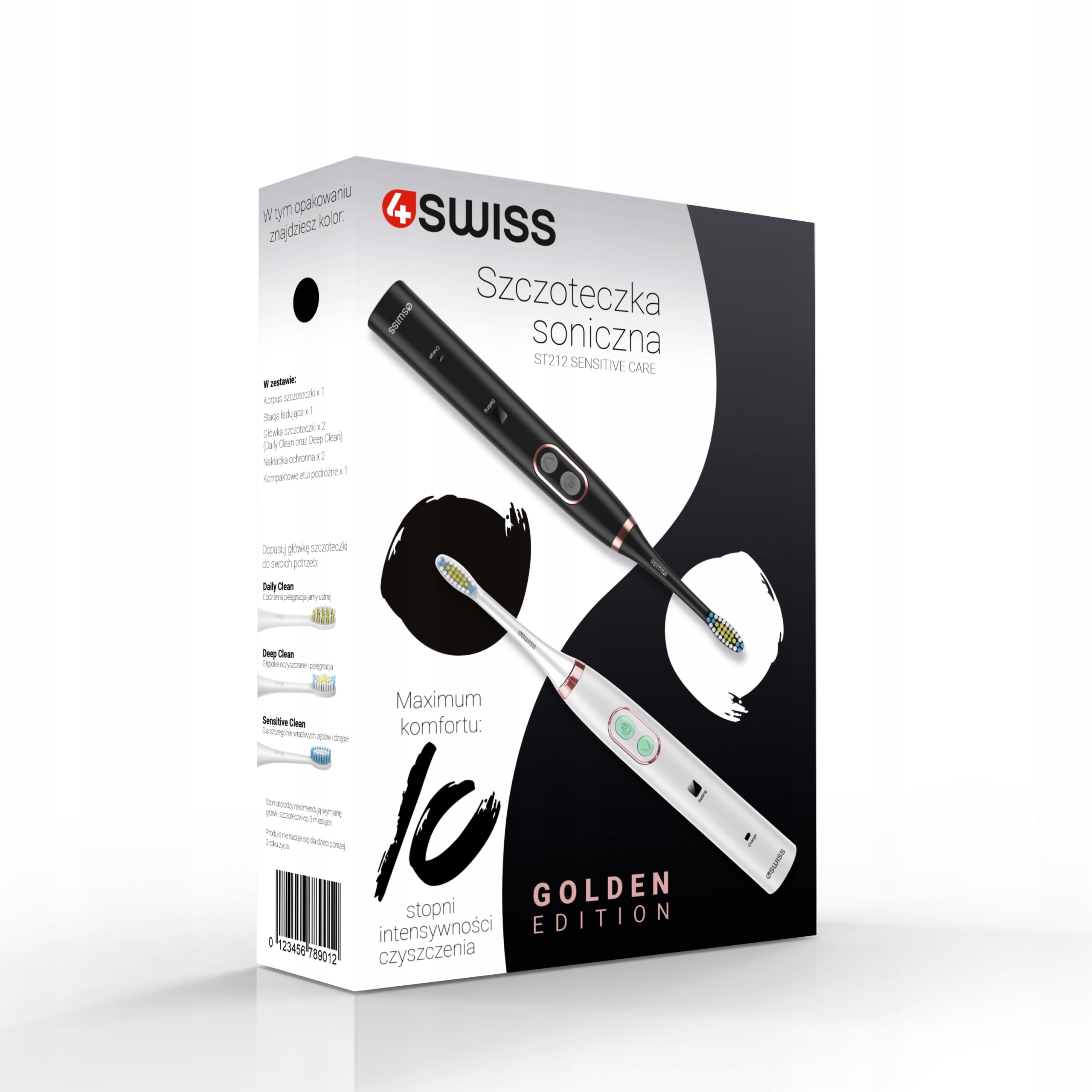 Звукова зубна щітка 4Swiss ST212 Sensitive Care Golden Edition — це продукт, розроблений з турботою про ваші зуби та ясна. Завдяки 5 режимам очищення та 10 рівням інтенсивності він забезпечує максимальний комфорт, точний догляд і ідеальне пристосування до потреб.