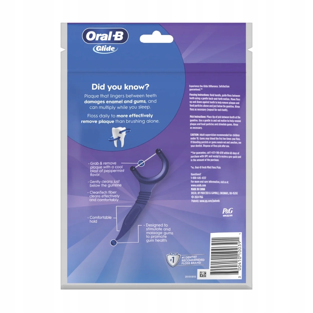 Oral-B Glide Arctic Peppermint Oil - це набір унікальних зубочисток, що містить 75 штук, що забезпечує комплексну гігієну ротової порожнини. Ці інноваційні нитяні зубочистки є революційними завдяки використанню олії м’яти, яка надає їм освіжаючого смаку та забезпечує тривале відчуття свіжості.