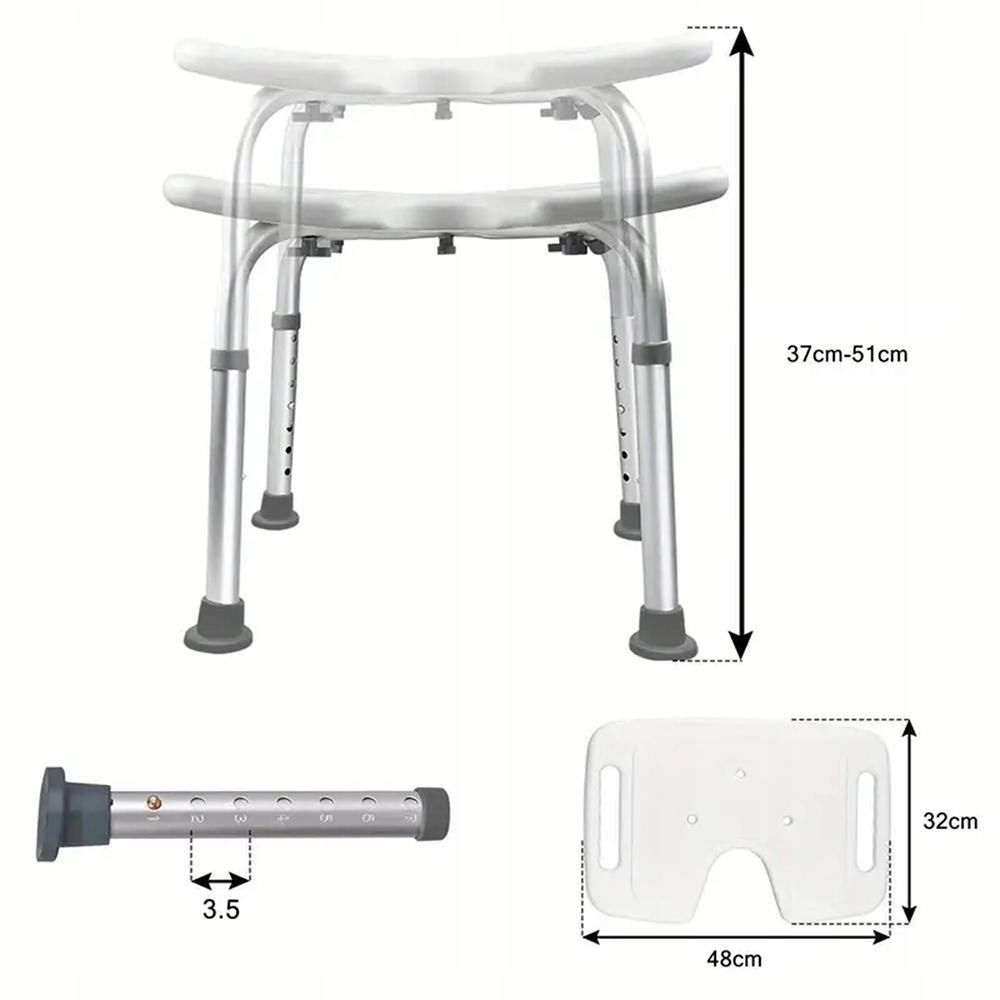 Висота цього крісла для ванни може бути відрегульована на 7 рівнях від 37 см до 51 см для задоволення ваших різних потреб.