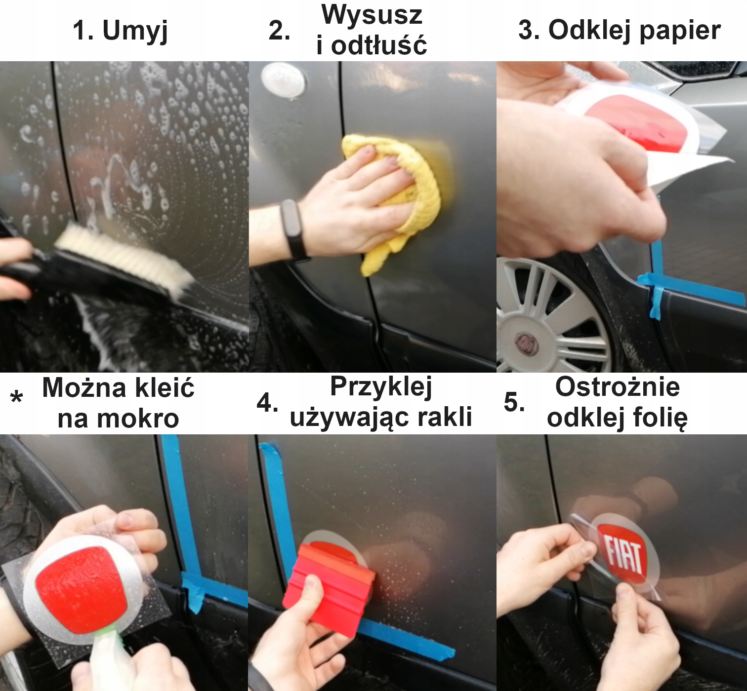 наклейка з мокрими склеюванням повинна бути залишена для сушіння , перш ніж ми знімаємо прозору транспортну фольгу - вода повинна випаровуватися до того, як клей почне працювати . На великому сонці він випаровується навіть через 10-20 хвилин, в той час як в прохолодніші, похмурі дні найкраще чекати 24 години. після випаровування воду знову слід натиснути всю наклейку з раком і обережно відшаровуйте прозору транспортну фольгу.
