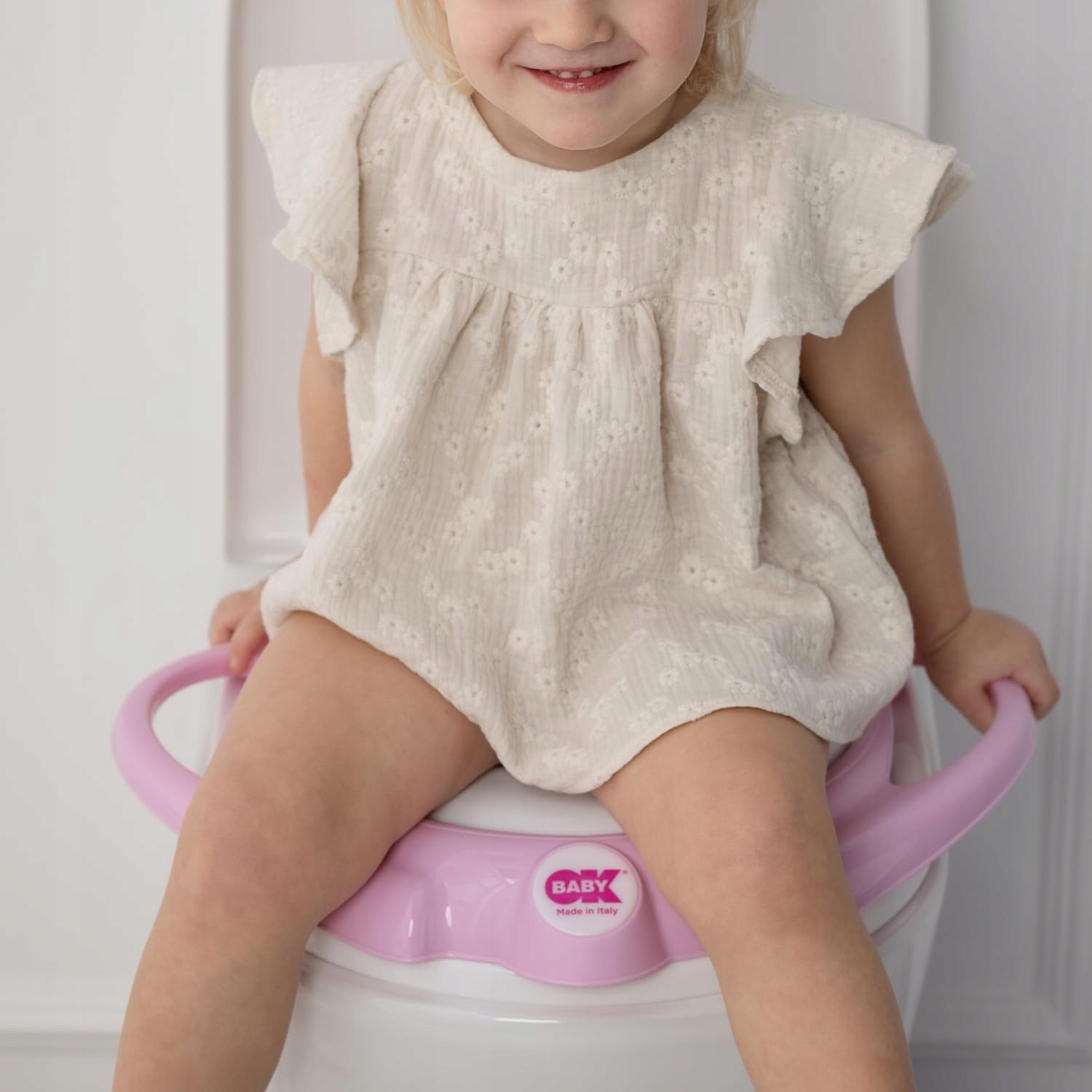 - з двома ручками, так що дитині не доводиться торкнутися миску для туалету, так що вона добре тримається