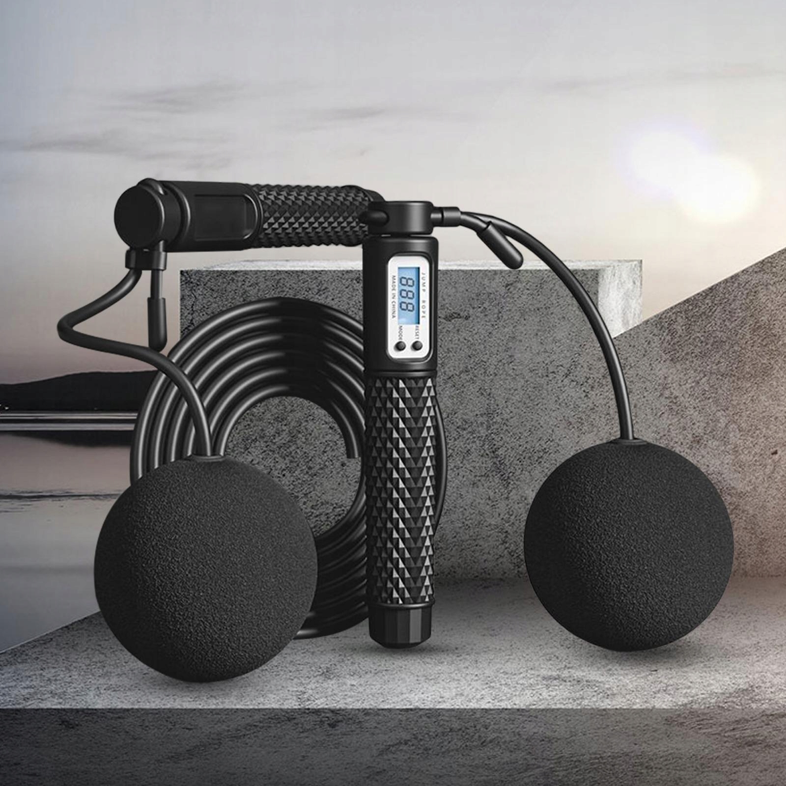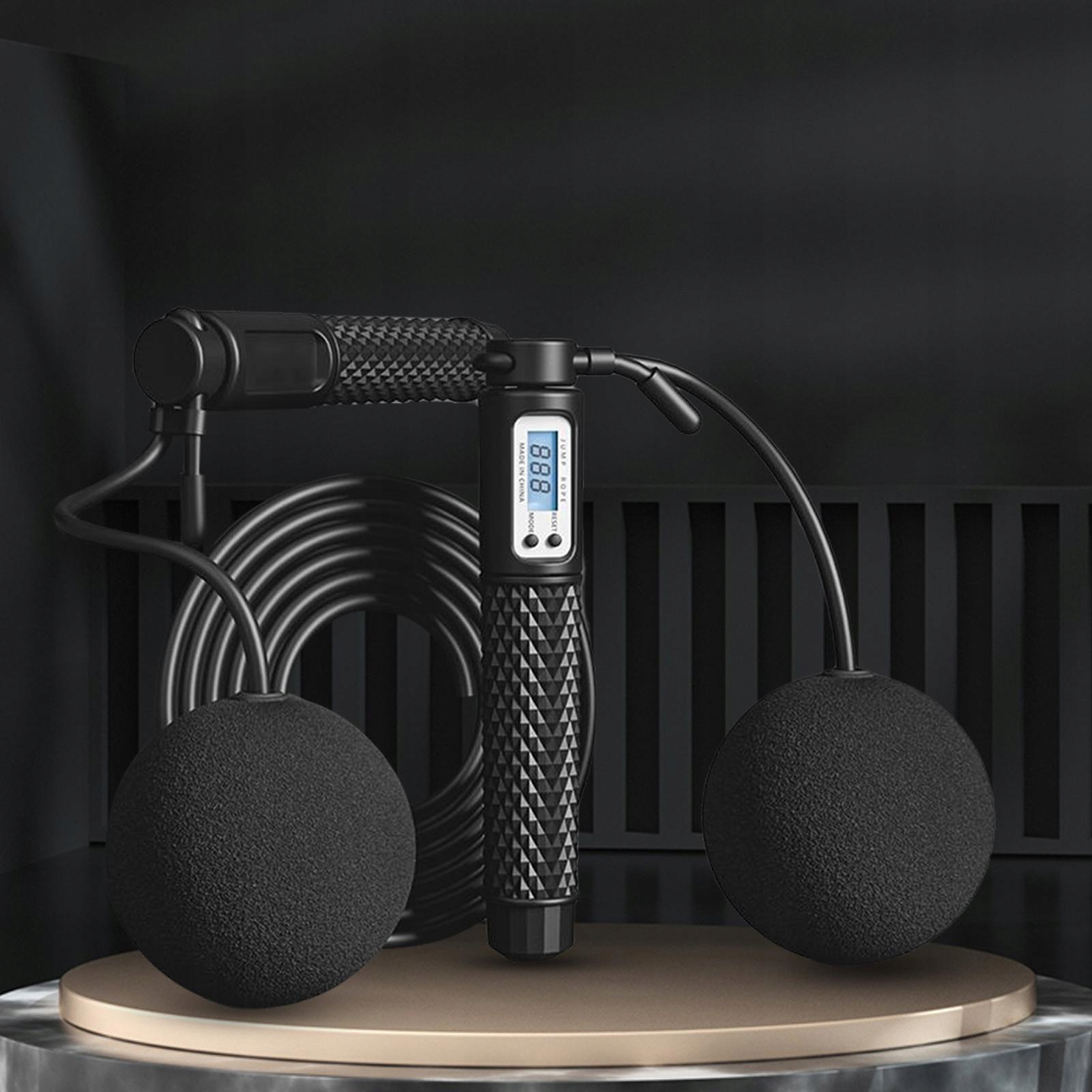 РК-дисплей: лічильник Бездротова скакалка, обладнана цифровим дисплеєм, вбудованою подвійною індукційною системою, чутливим і своєчасним підрахунком. 4 режими даних, кілометри, милі, калорії, підрахунки. кнопка скидання, кнопка перемикання, проста у використанні.