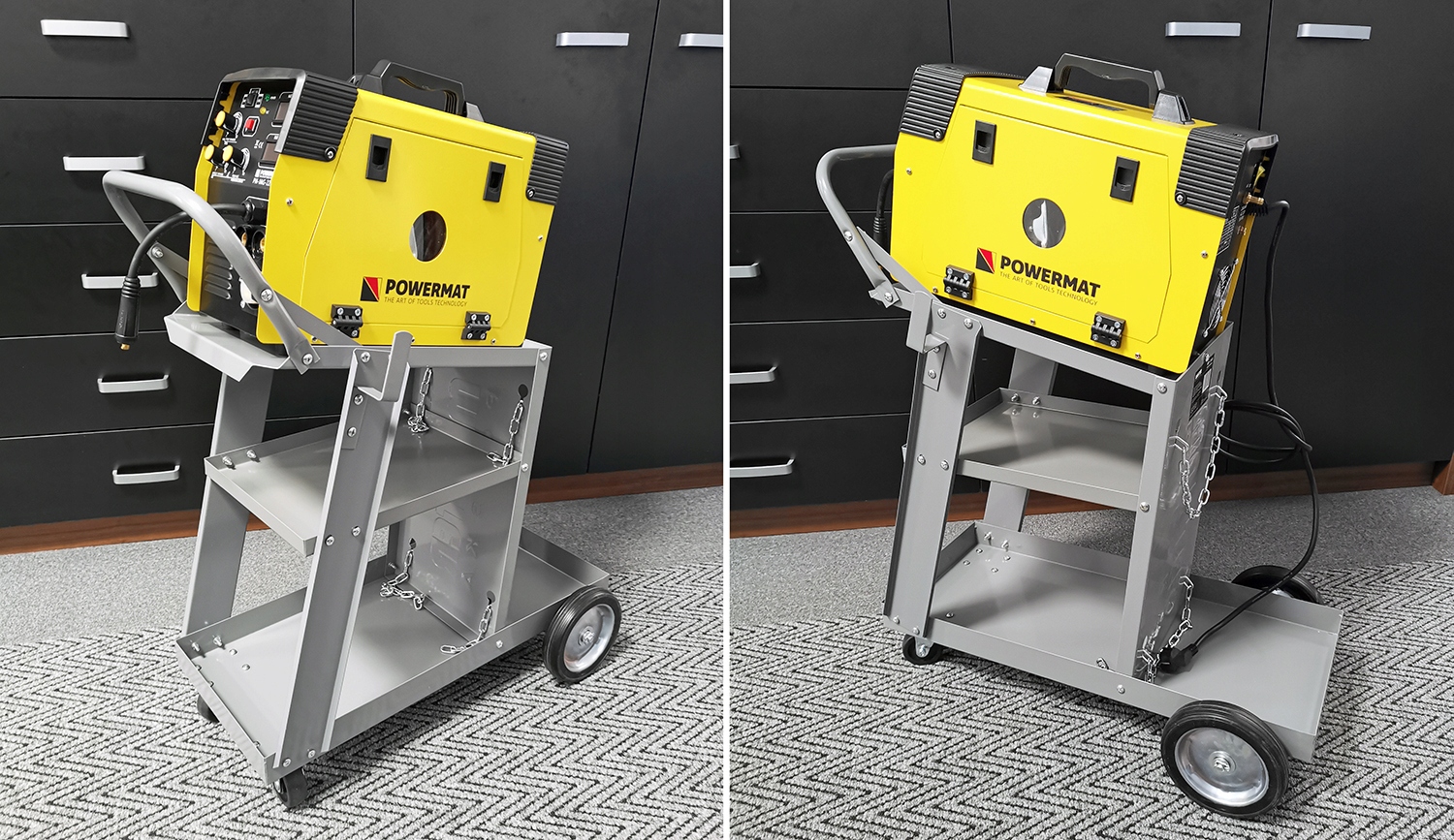 ► Можна використовувати з усіма Зварювальні апарати MMA, MIG, TIG. При зварюванні циліндром нам не потрібно рухати його вручну. Додаткові полиці розмістять необхідні під час роботи аксесуари, щоб вони завжди були під рукою.