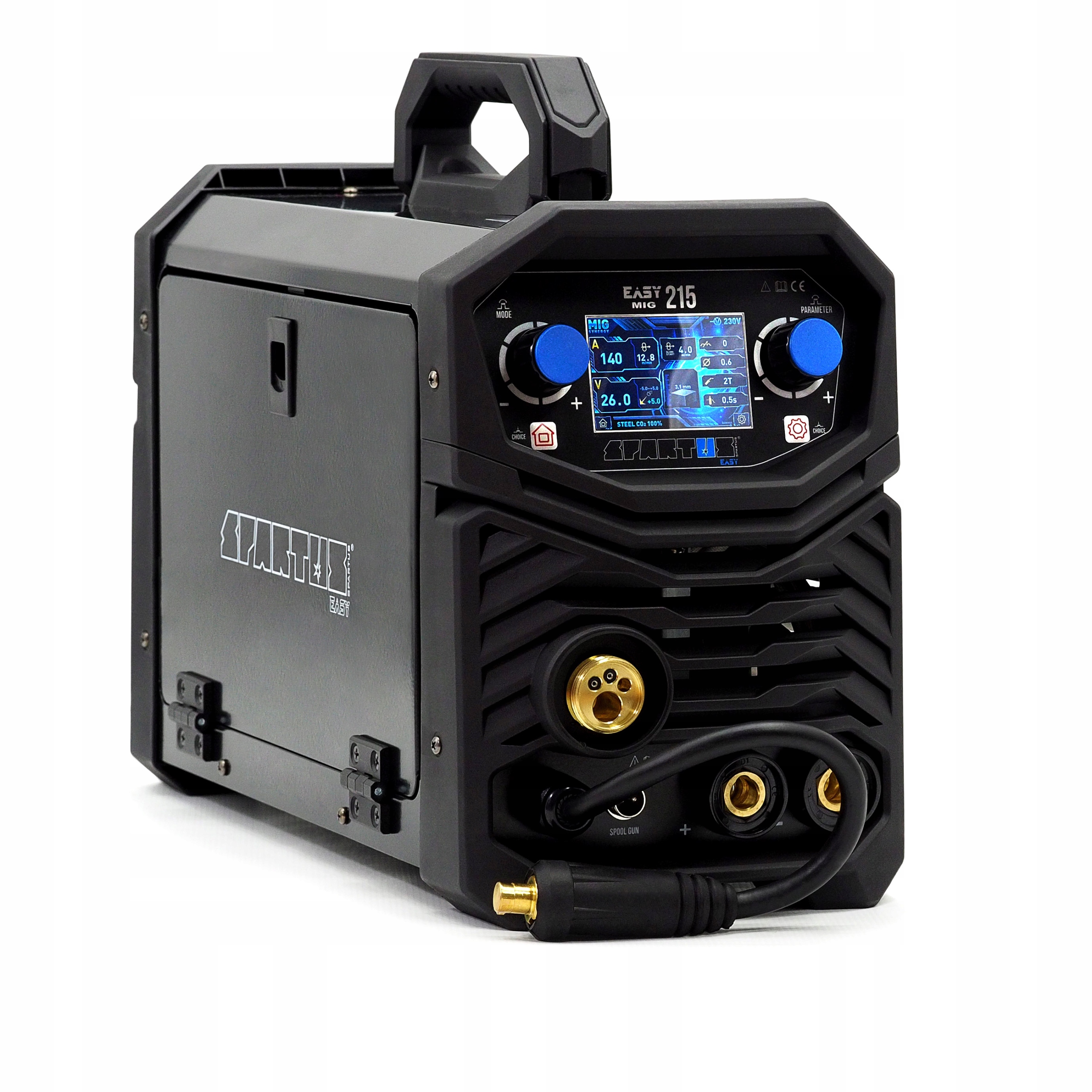 SPARTUS EasyMIG 215 оснащено синергетичною системою для зварювання MIG/MAG сталевими дротами діаметром 0,6 / 0,8 / 1,0 мм і алюміній 1,0 мм з можливістю ручної корекції параметрів. Користувач може вибрати одну з наступних програм: зварювання сталі CO2, змішаної сталі, алюмінію та порошкового дроту. Апарат також працює в режимі ручного зварювання.