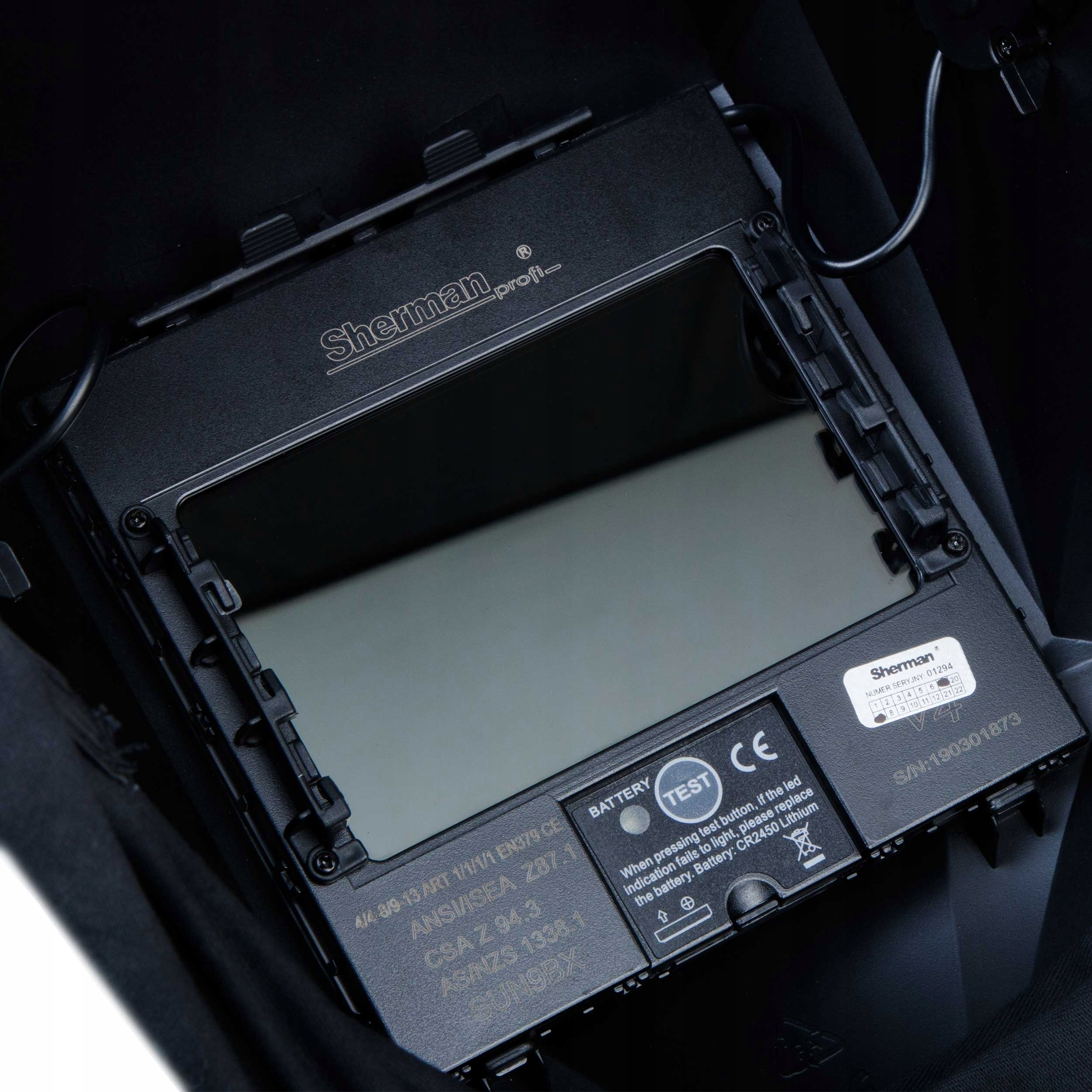 SHERMAN V4 оснащений фільтром, який може змінювати ступінь темряви. Фільтр перед зварюванням прозорий, ЗВАРЮВАЛЬНИК може уважно спостерігати за робочою зоною. При виникненні зварювальної дуги фільтр відразу потемніє. Коли дуга згасне, фільтр стане прозорим. Козирок використовує фільтр TRUE COLOR – NATURAL COLOURS, який робить об’єкти яскравішими та різкішими, роблячи їх реалістичнішим.