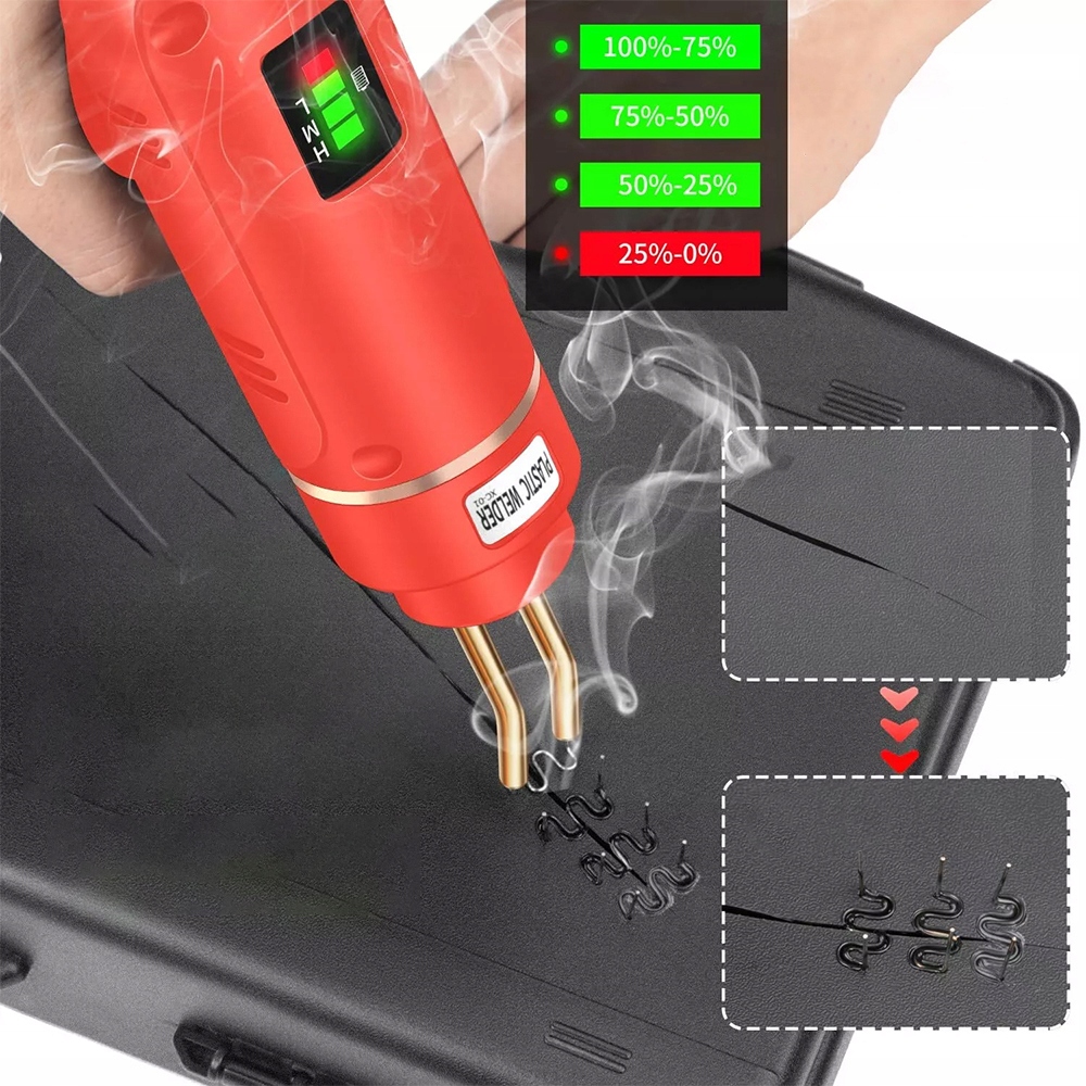 - Апарат для зварювання пластику потужністю 200 Вт перезаряджається та оснащений високопродуктивною літієвою батареєю на 5000 мАг для зручності перенесення. li>