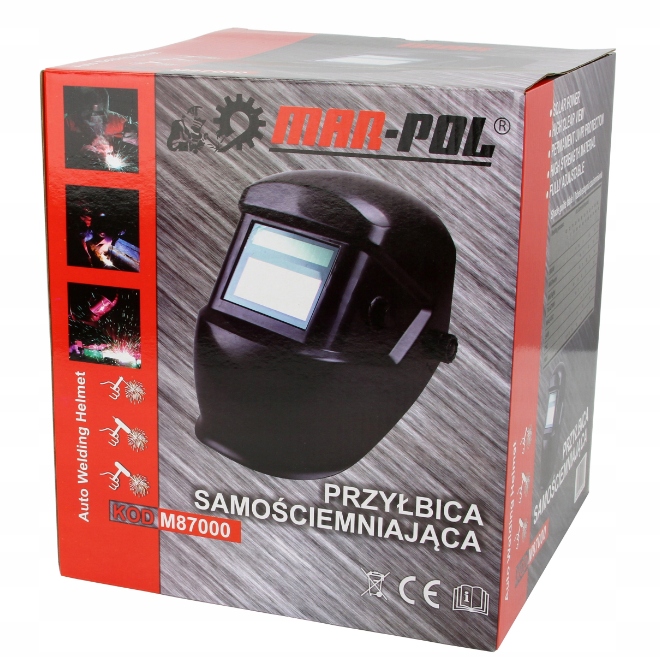 Високоякісна плоть. Маска підходить для зварювання з багатьма методами зварювання дуги: MIG, TIG, MAG, MMA. Спеціальний датчик, розміщений у фільтровій касеті, автоматично ідентифікує початок процесу зварювання, запускаючи функцію самостійного наявності. Після закінчення роботи фільтр автоматично повертається до стану світіння. Фільтр працює від внутрішніх акумуляторів, які автоматично завантажуються за допомогою сонячних батарей. ступінь,