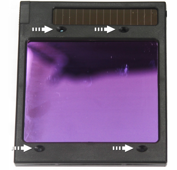 Автоматичний зварювальний шолом оснащений 4 фотодатчиками, розташованими в два ряди, два вгорі та два внизу козирка.