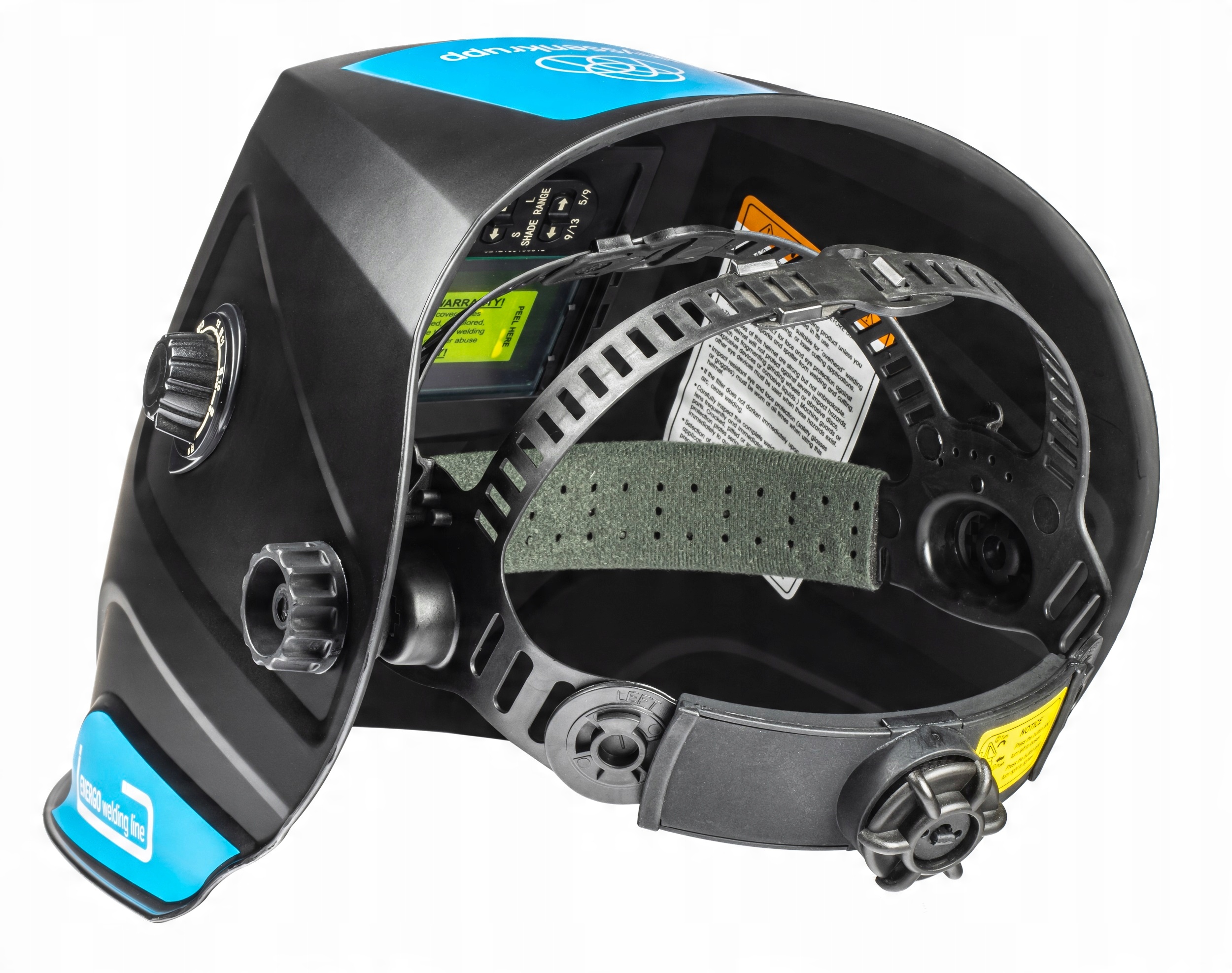 У місці, де чоло стикається з головним убором, ми використали м’яку підкладку, яка зменшує тиск на чоло та потовиділення. Таке рішення мінімізує відчуття дискомфорту та втоми під час тривалого використання маски. Головний убір також дуже легкий, а матеріали, з яких виготовляється головний убір, стійкі до високих температур, що вкрай важливо під час зварювання.