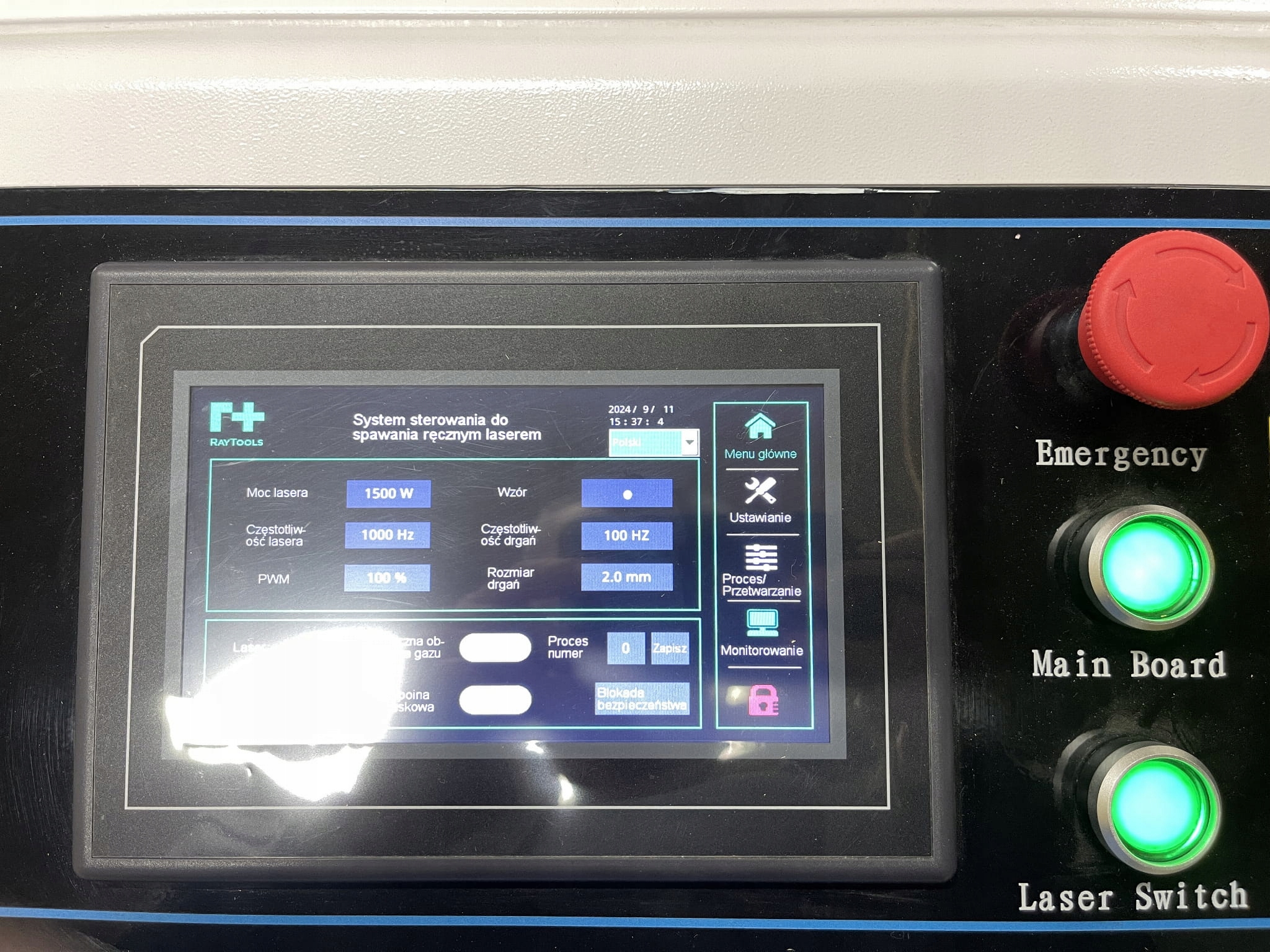 Зміна параметрів зварювання проводиться за допомогою панелі. Можливість зміни потужності, частоти, лазерного робочого циклу, а також типу плями та лазерного променя.