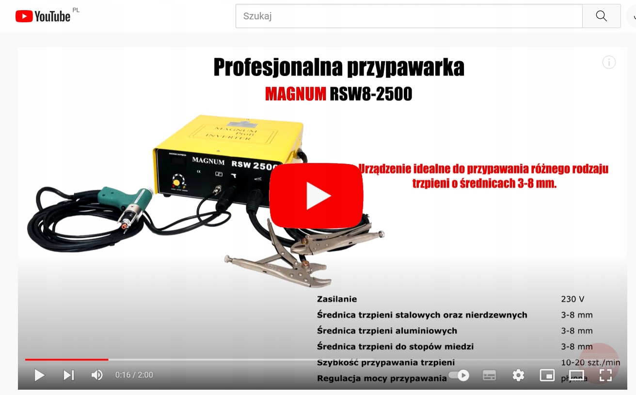 Апарат для зварювання шпильок RSW-2500 від MAGNUM використовується для зварювання: