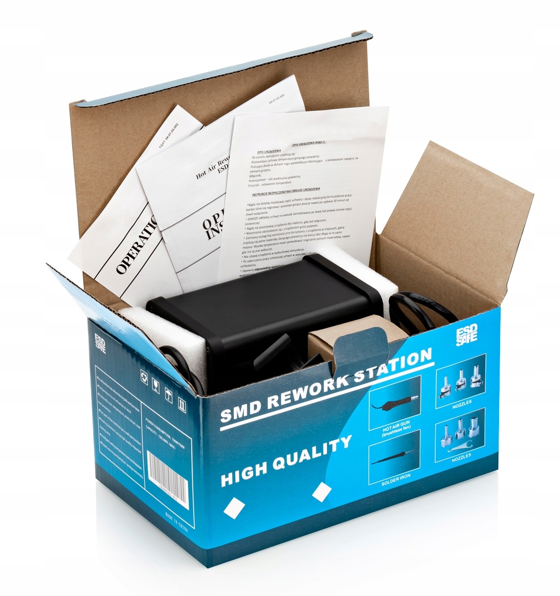 - Гаряча повітряна станція має датчик у підставці для колби, який після встановлення колби на підставку охолоджує нагрівальний елемент, а потім повертає його вимкнено (так званий стан ОЧІКУВАННЯ) . Завдяки цьому користувач економить енергію, що дозволяє подовжити термін служби обігрівача та підвищити безпеку та комфорт роботи,