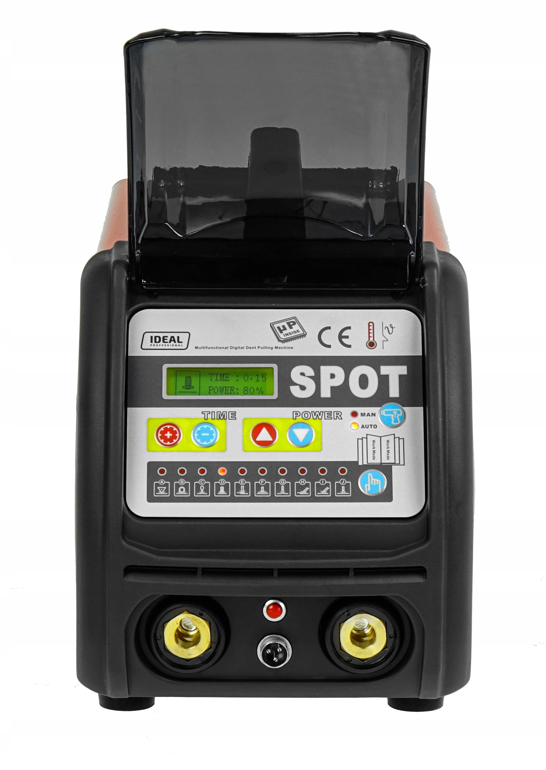 Всі налаштування зварювального апарату доступні з панелі керування. Після вибору типу інструменту апарат автоматично налаштує зварювальний струм і оптимальні робочі цикли. Також є можливість вручну встановити час і струм зварювання.