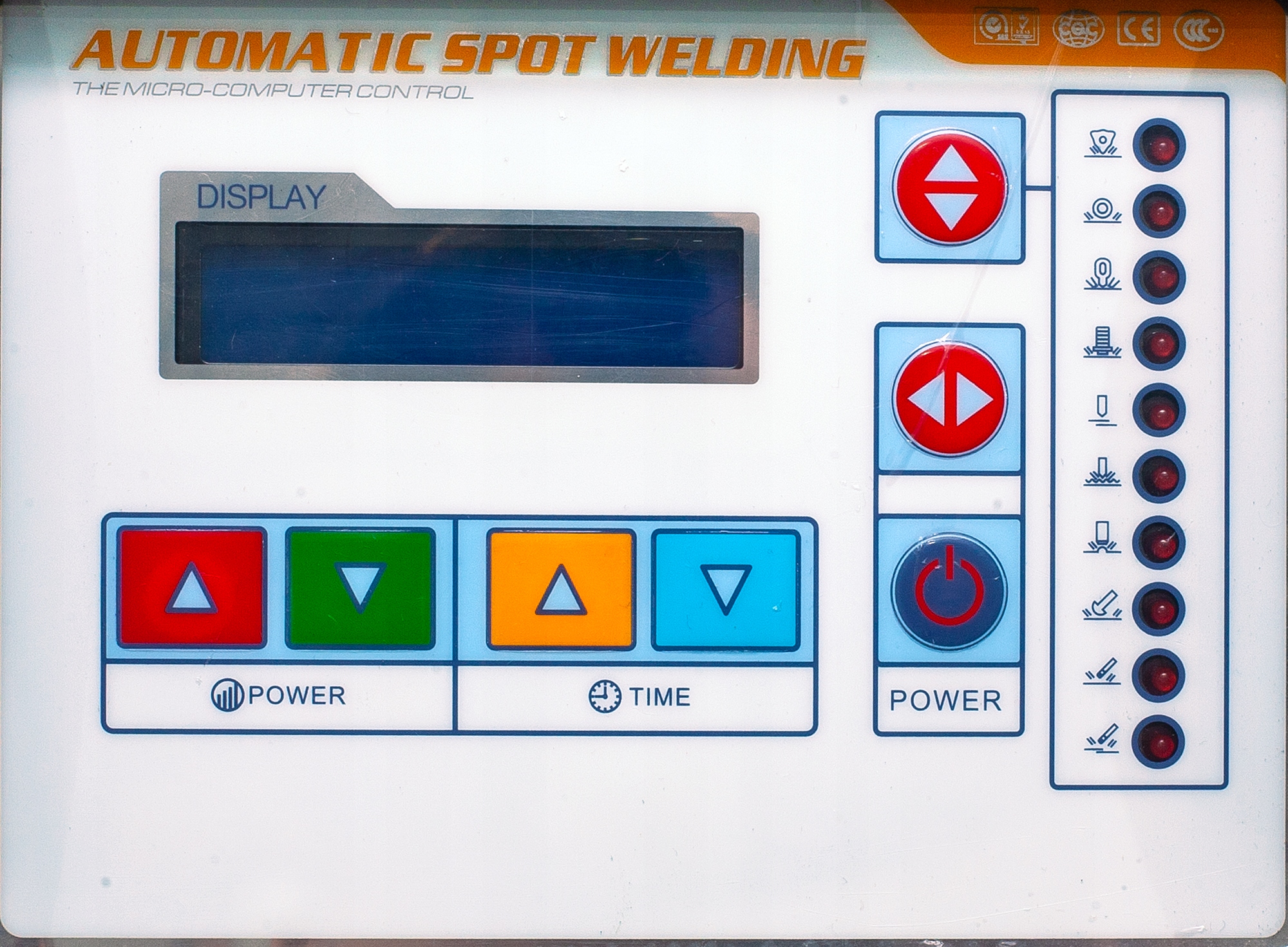 - Монохромний дисплей (відображає режим роботи, час зварювання, товщину матеріалу та зварювальний струм)