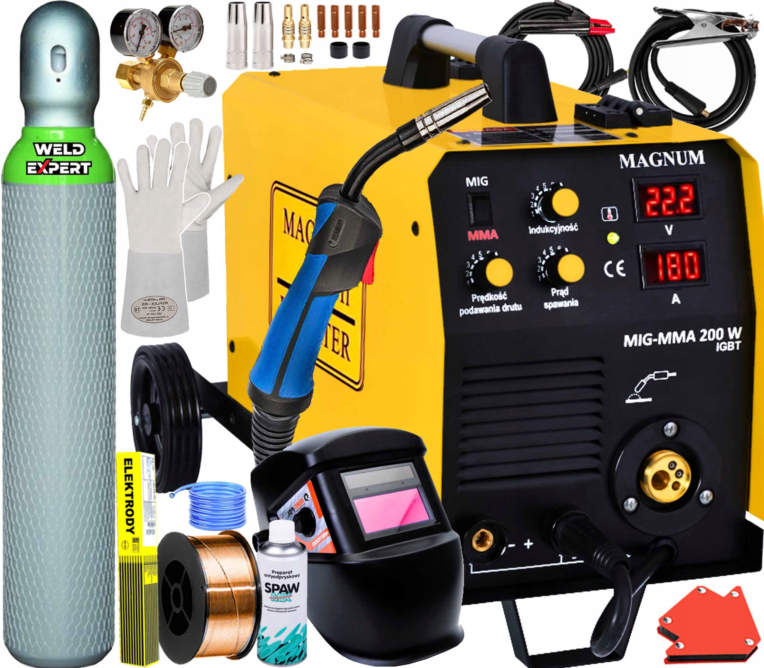 +КОМПЛЕКТ ДЛЯ ЗВАРЮВАННЯ MIG/MAG MMA , W ЩО ВКЛЮЧАЄ: