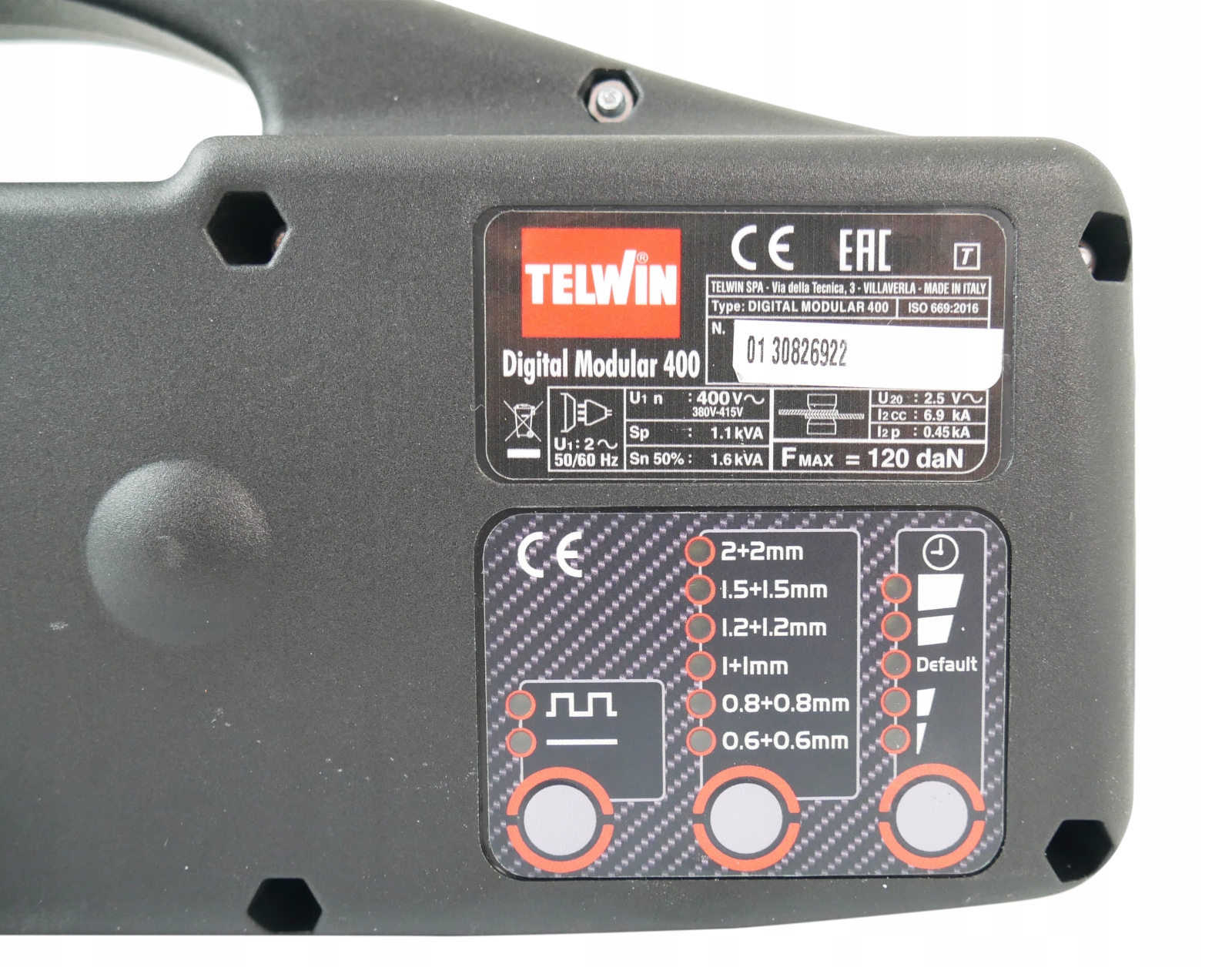 Електроживлення 400V, максимальна потужність 13kW. Вбудований регулятор часу зварювання. Безперервна та імпульсна робота (для гнучких листів), вибір товщини зварюваних листів, регульований час зварювання.