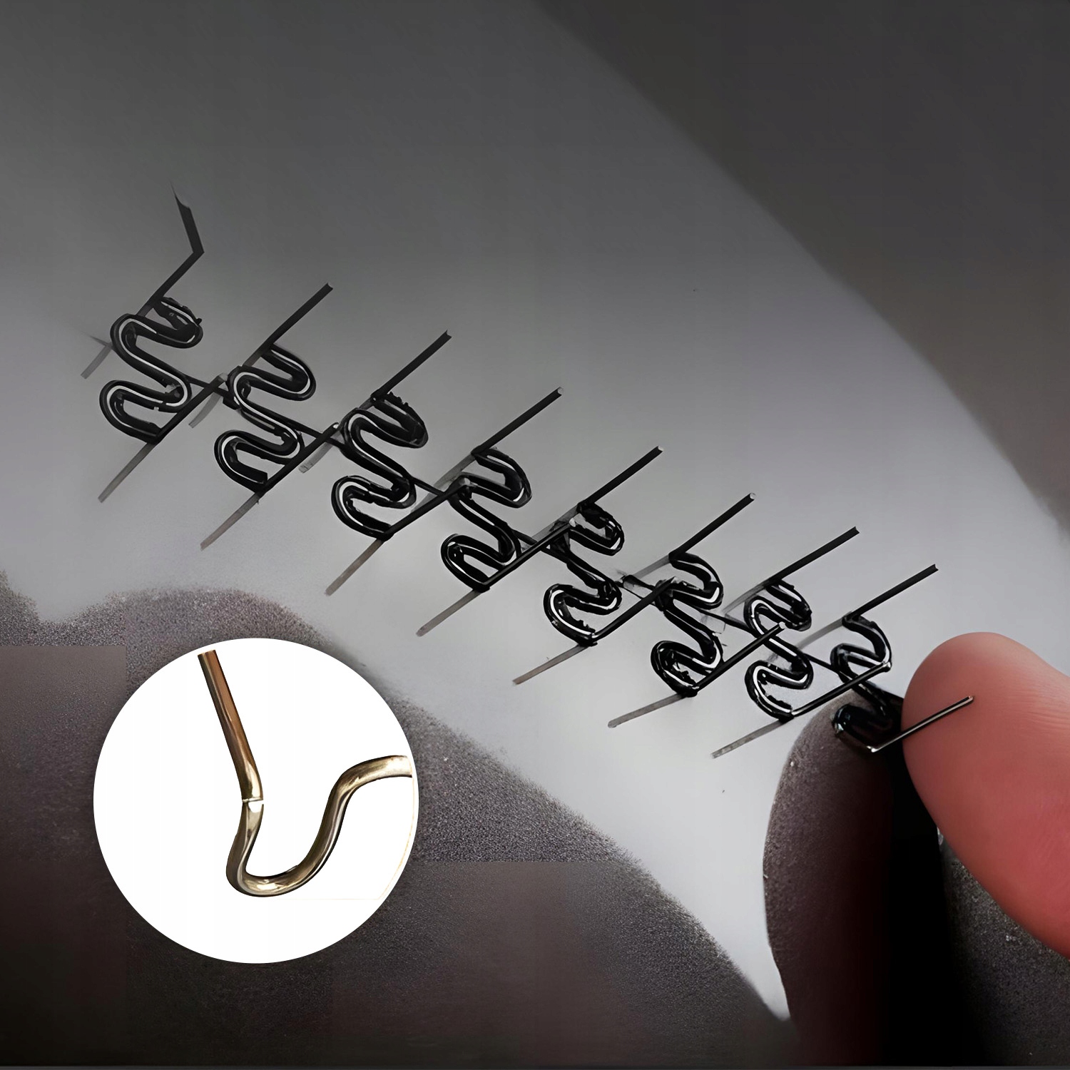 - 1200 скоб різної форми: прямі, тупі , внутрішній, синусний - завдяки цьому набору можна адаптувати інструмент для різних видів ремонту.