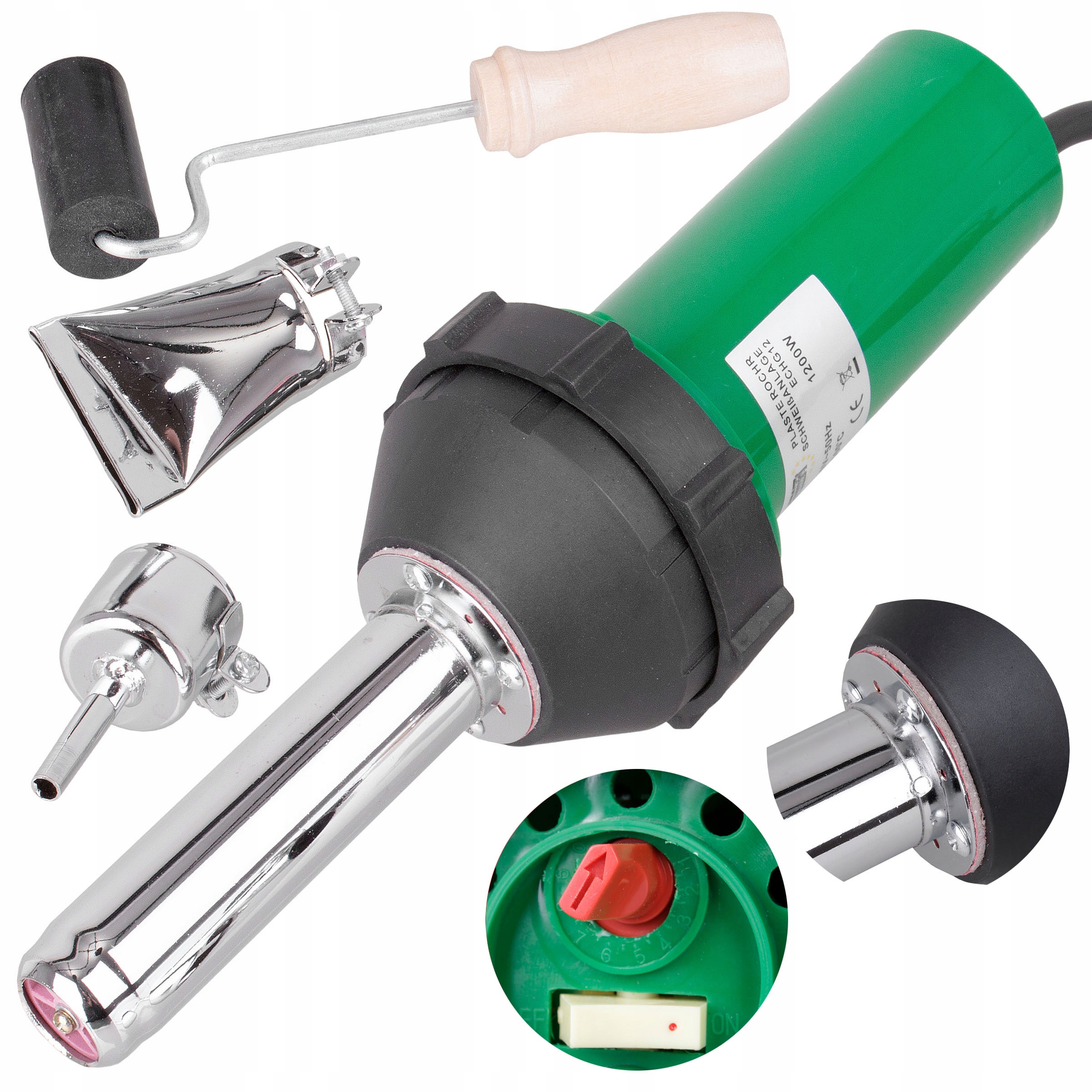 Набір для зварювання пластику, розроблений для роботи, що потребує використання потоку гарячого повітря. Пристрій використовується, серед іншого, для сушіння, розклеювання, деформування, видалення фарб і лаків, з’єднання труб або інших пластикових профілів.