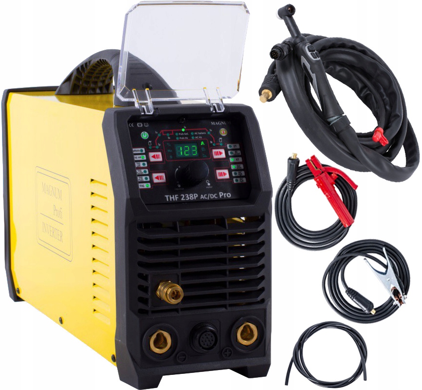 Пристрій THF238 PRO AC/DC від MAGNUM — це професійний легкий інверторний зварювальний апарат, призначений для високочастотного зварювання TIG (з безконтактним запалюванням зварювальної дуги) зі змінним струмом змінного та постійного струму. THF 238 забезпечує чудові характеристики при зварюванні алюмінію та його сплавів, нелегованої, низьколегованої, високолегованої сталі, титану та інших зварювальних металів і сплавів. Апарат також можна використовувати для зварювання стрижневим електродом з використанням електродів з плавким покриттям.