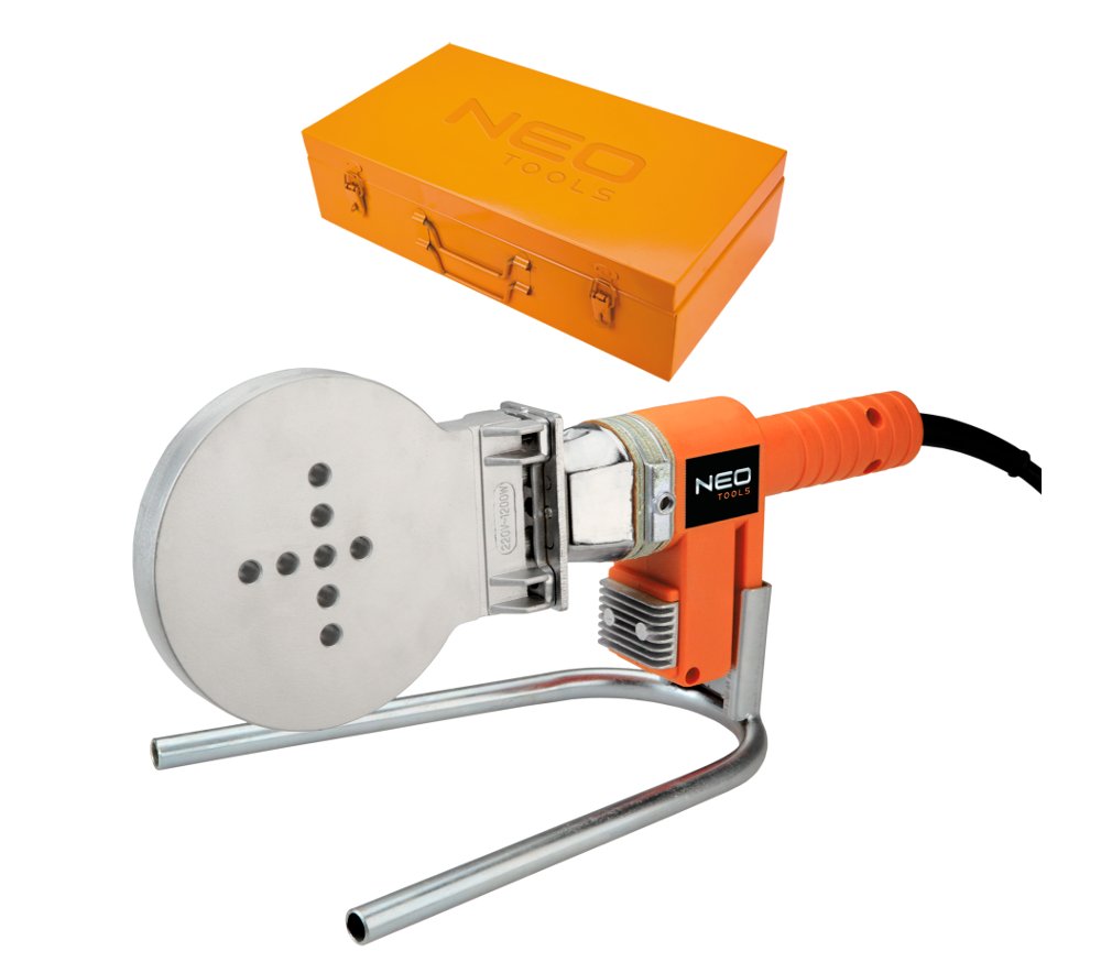 Апарат NEO для зварювання пластикових труб PE, PP, PB, потужність 1200W. Для зварювання гільз, труб і фітингів діаметром до 110 мм. Температура зварювальної головки 260°C гарантує ефективну роботу. Зварювальний апарат укомплектований підставкою. Набір упакований в практичну валізу. У пропозиції NEO представлені нагрівальні муфти з PTFE покриттям діаметром від 16 до 110 мм. Відповідність європейським стандартам безпеки забезпечується сертифікатом CE. Сертифікат TÜV Rheinland гарантує високу якість і надійність продукції.