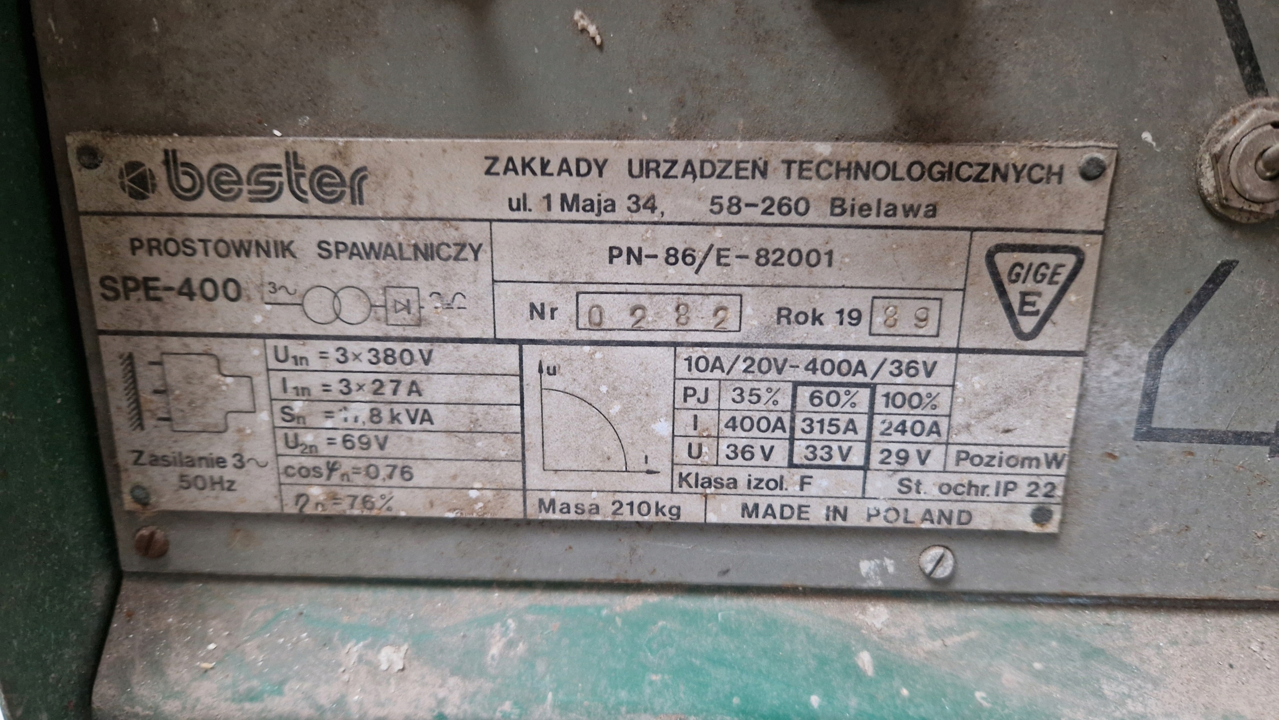 Зварювальний апарат Bester SPE-400 – це обладнання, яке, незважаючи на плин часу, досі користується попитом на вторинному ринку завдяки своїй простоті та довговічності структура, часто використовується в майстернях і промисловості. Ідеально підходить для ручного зварювання (MMA). Варто пам'ятати, що зварювальні апарати Bester зазвичай хвалять за їх функціональність і довговічність.