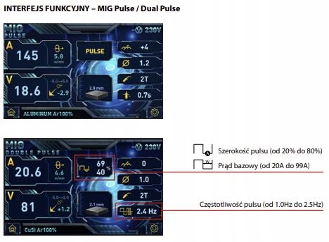 easymig 217dp дозволяє працювати з дротом у діаметрі діаметром 0,8 - 1,2 мм. Пристрій, оснащений синергетичними програмами, також дозволяє вводити вручну корекцію параметрів встановлених. Додатковою перевагою пристрою є можливість зварювання з пульсуючим струмом. Використання подвійної пульсації в методі MIG/MAG дозволяє отримати зварення якості та естетики, порівнянної з TIG.
