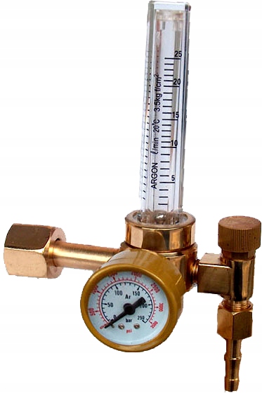 Редуктор одноступінчастий для аргону, суміші та вуглекислого газу з ротаметричним індикатором витрати газу та манометричним індикатором робочого тиску в балоні.