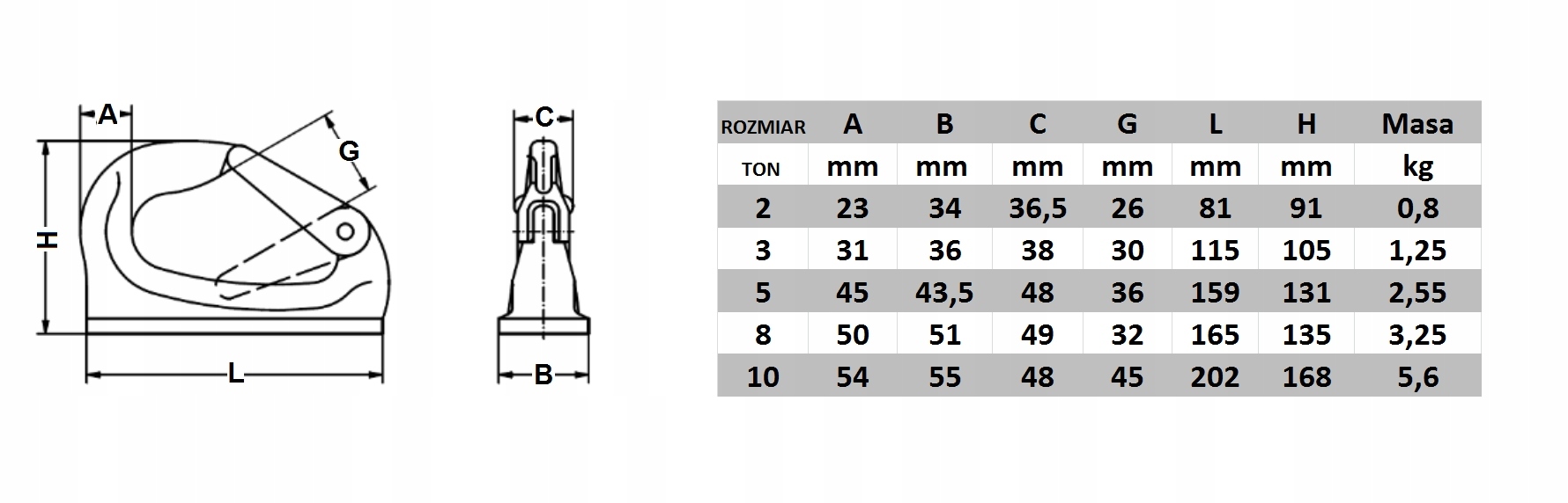 Гак має велику поверхню зварювання.