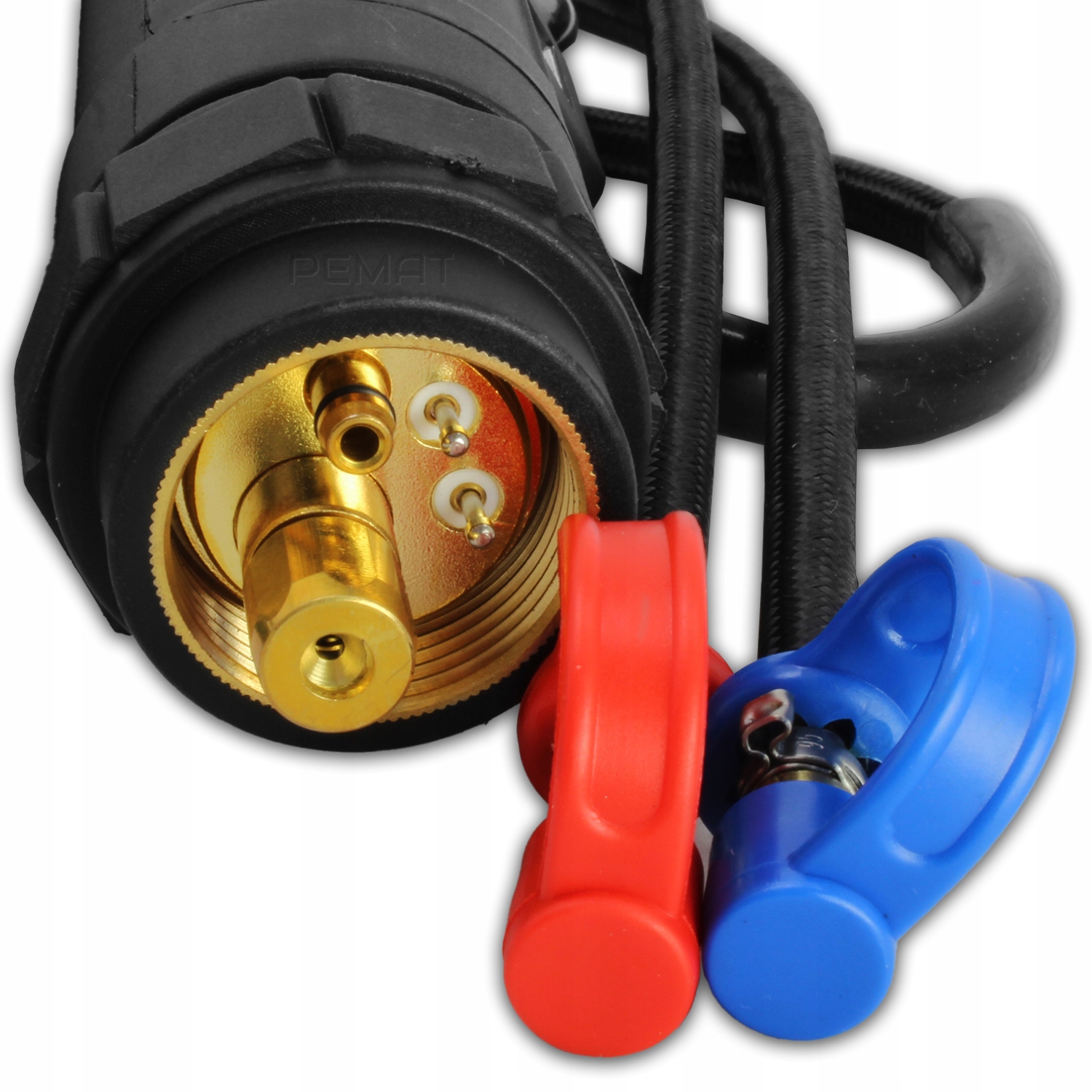 Ручки оснащені швидким оснащеним пристосуванням євро з пружинними контактами та ізольованим дротом. Це дозволяє використовувати ручку в більшості зварювальних пристроїв.