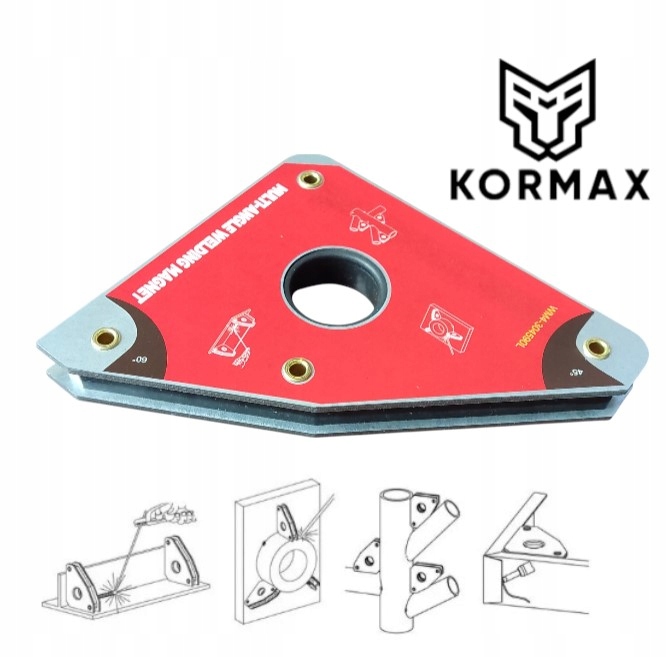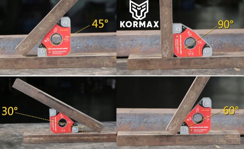 Многокутовий зварювальний магніт Kormax WM4-304590L є незамінним інструментом у майстерні кожного зварювальника, монтажника або ентузіаста DIY. Завдяки міцній конструкції та чотирьом робочим кутам (30°, 45°, 60°, 90°) він полегшує точне позиціонування та кріплення сталевих елементів під час зварювання, складання або паяння.
