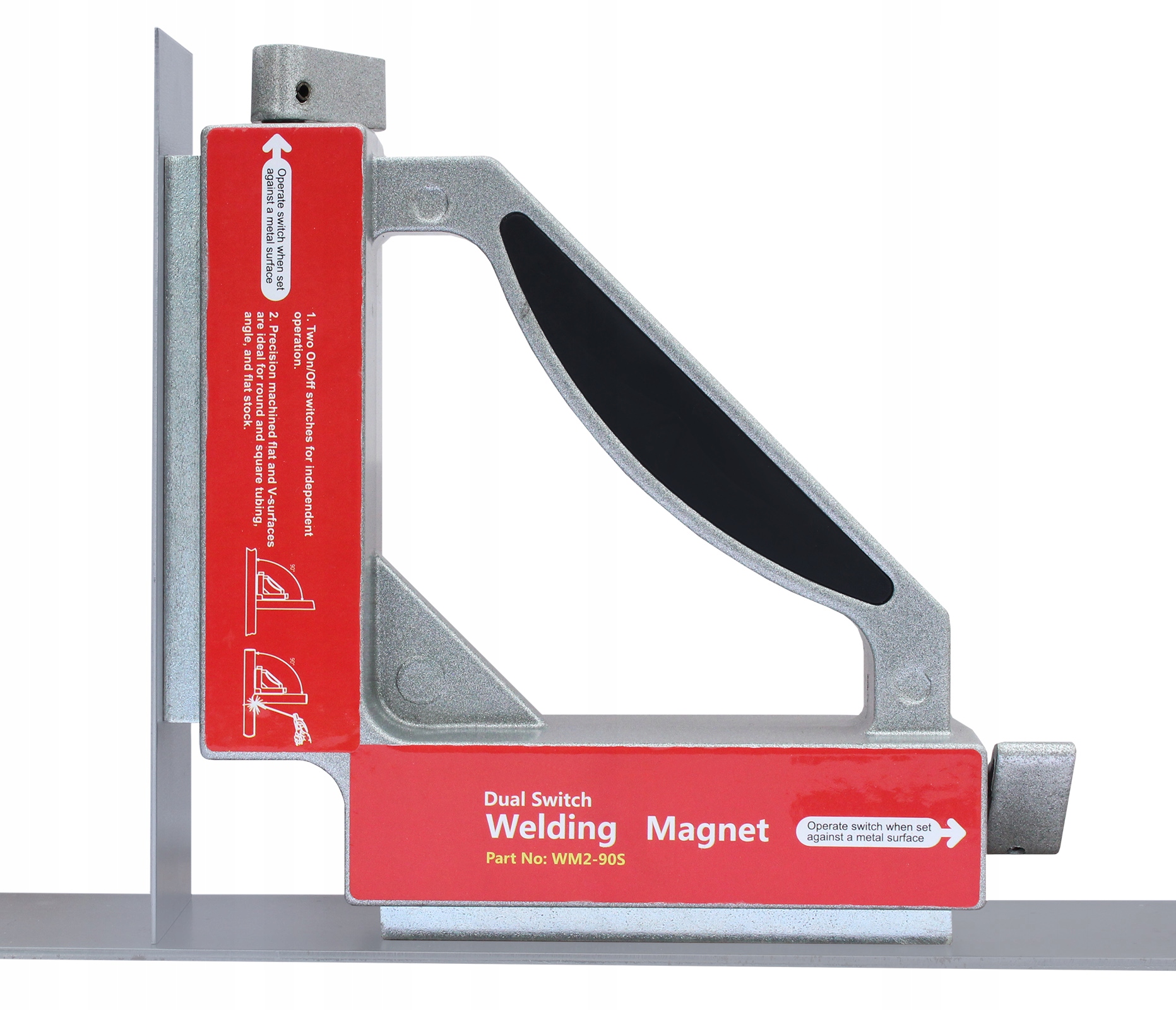 ЗВАРЮВАЛЬНИЙ МАГНІТНИЙ КУТОВИЙ КРОНШТЕЙН З ДВОМА ПЕРЕМИКАЧАМИ WM2-90S