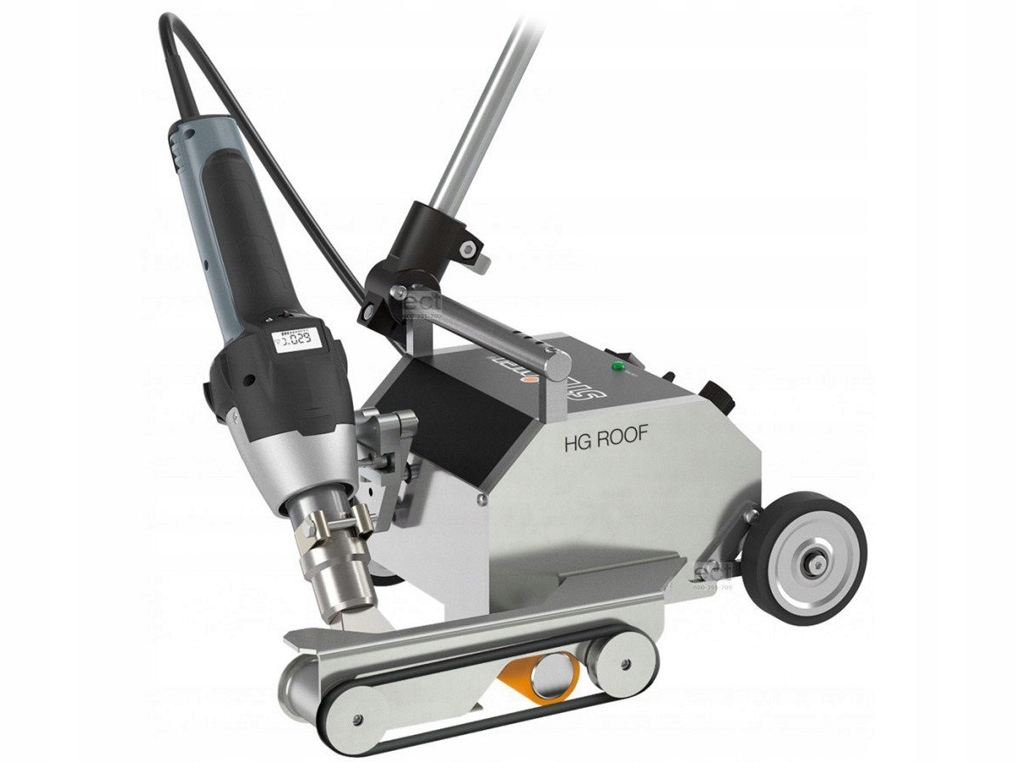 Відповідна конструкція та піднятий направляючий ролик дозволяють зварювати близько до краю даху. Телескопічна рукоятка значно полегшує коригування напрямку руху зварювальника, а плавне регулювання швидкості візка в діапазоні 1-5 м/хв адаптує інструмент під кожну роботу.