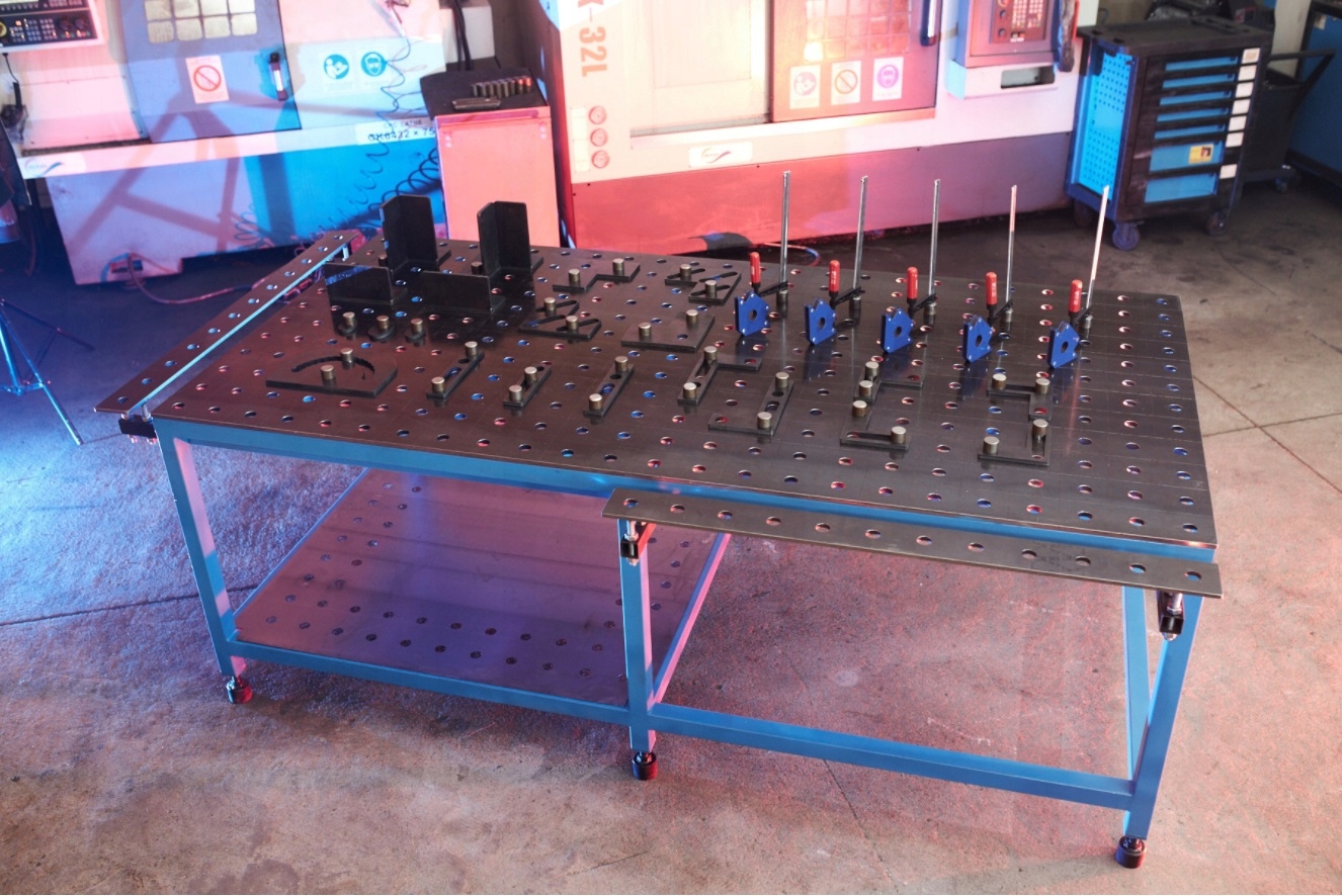 МИ ПРОПОНУЄМО ЗВАРЮВАЛЬНИЙ СТІЛ РОЗМІРАМИ 1200 X 2400, У СИСТЕМІ МОНТАЖУ 28, З БАЗОВИМ НАБОРОМ ТА ІНСТРУМЕНТІВ. ВЕРХНЯ ТОВЩИНА 12 ММ
