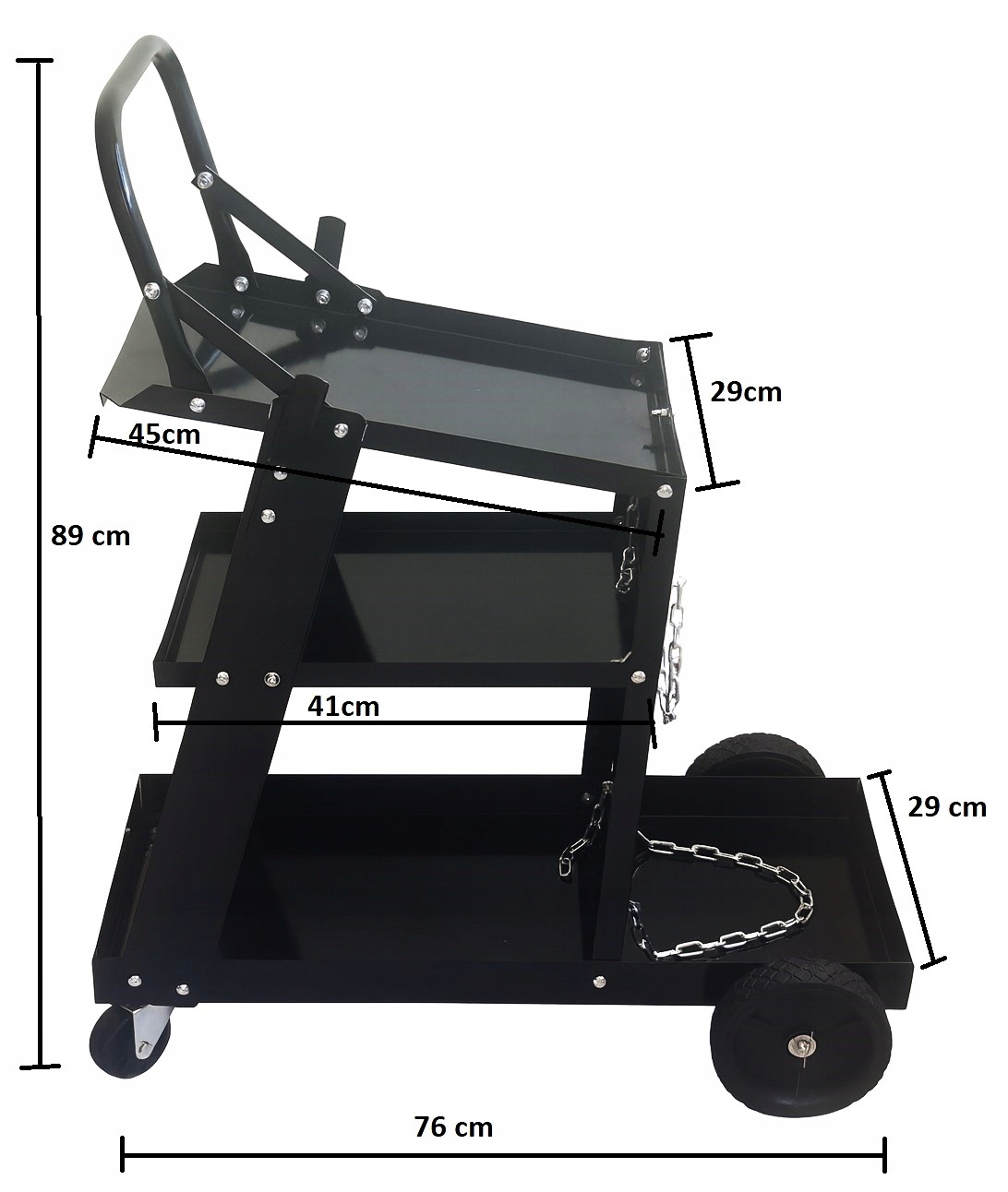 ✅ Полиці: Розрізнення особливості цієї коляски - це наявність трьох полиць, що дозволяє ефективно сегрегацію та зберігання різних зварювальних елементів. На полицях ви можете покласти зварювальники, газові балони, електроди, зварювальні маски та інші аксесуари, підтримувати порядок на робочому місці.